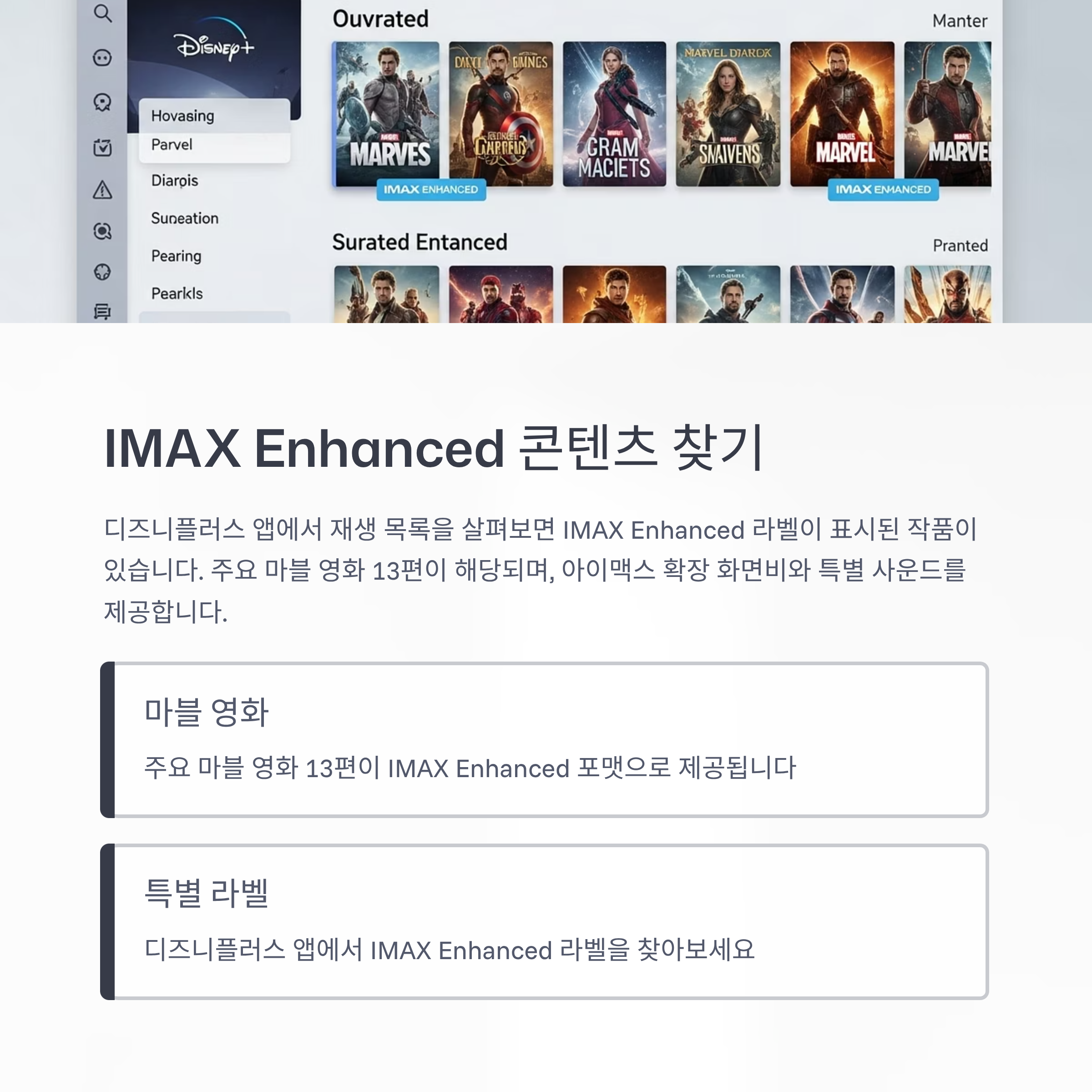 디즈니플러스 앱에서 재생 목록을 살펴보면 IMAX Enhanced 라벨이 표시된 작품이 있습니다.