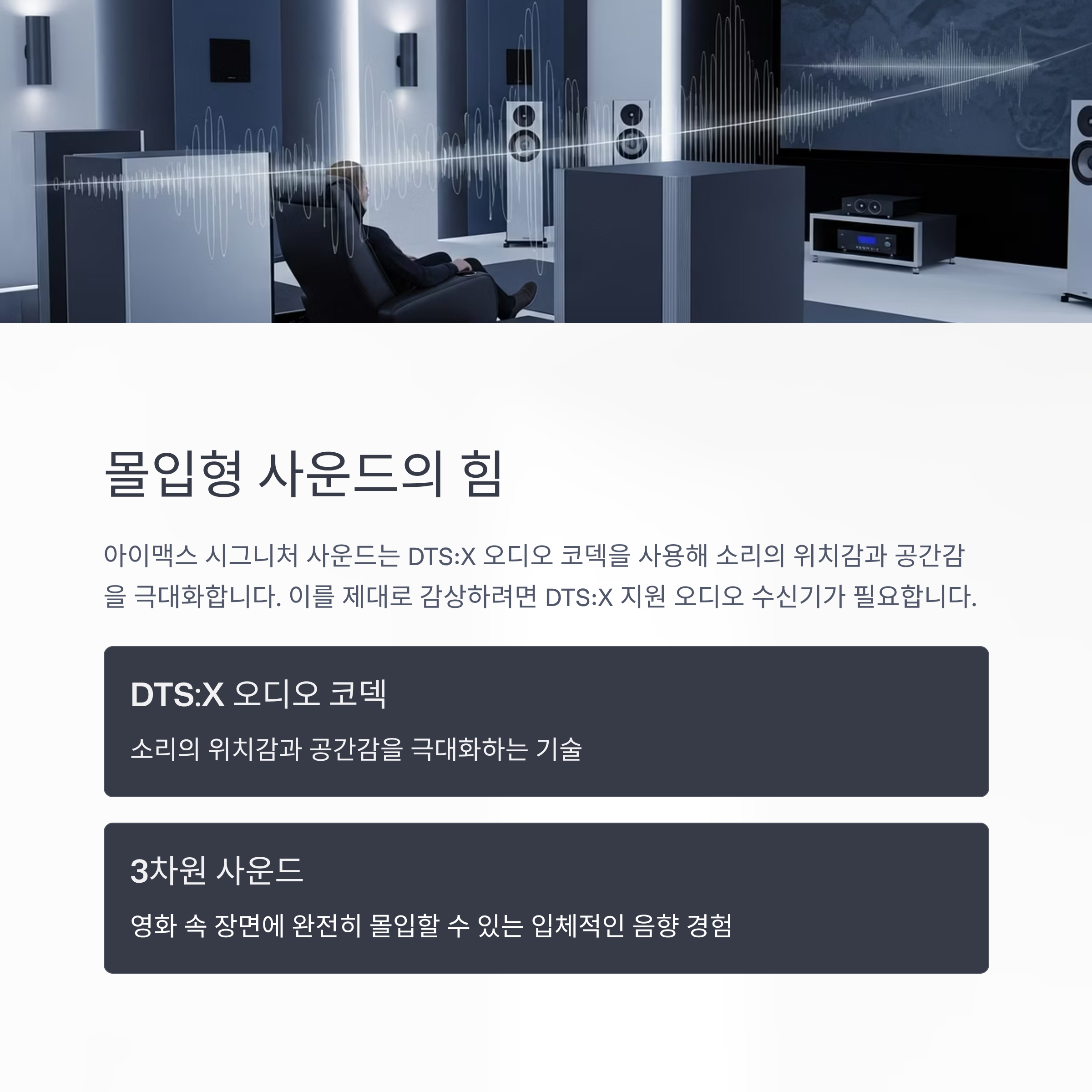 아이맥스 시그니처 사운드는 DTS:X 오디오 코덱을 사용해