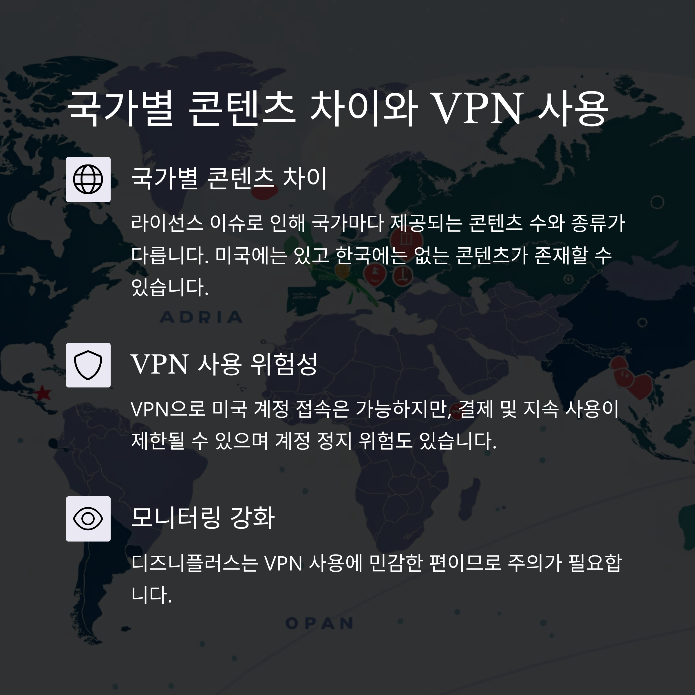 디즈니플러스는 VPN 사용에 민감한 편이므로 주의가 필요합니다.