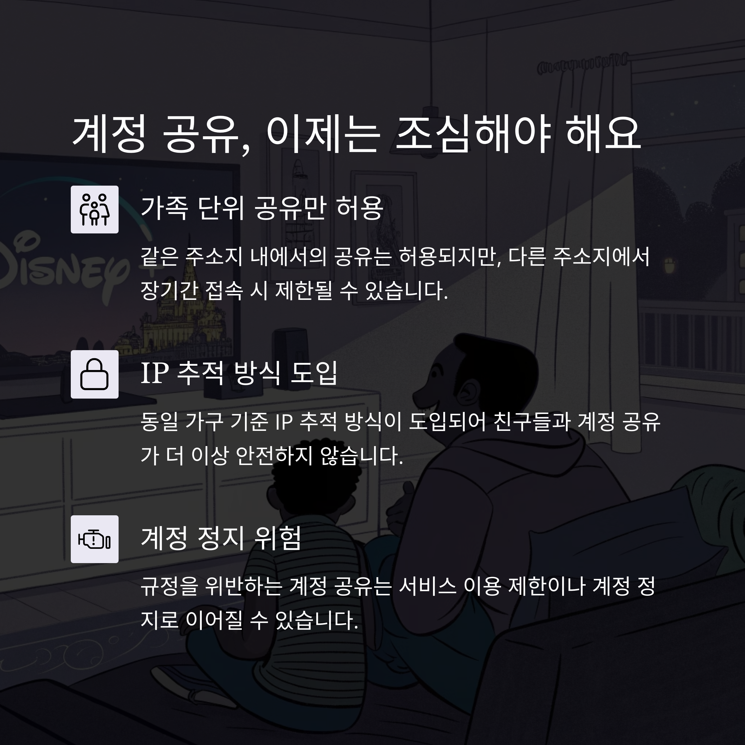 디즈니플러스는 2025년부터 계정 공유를 엄격히 제한하고 있습니다.