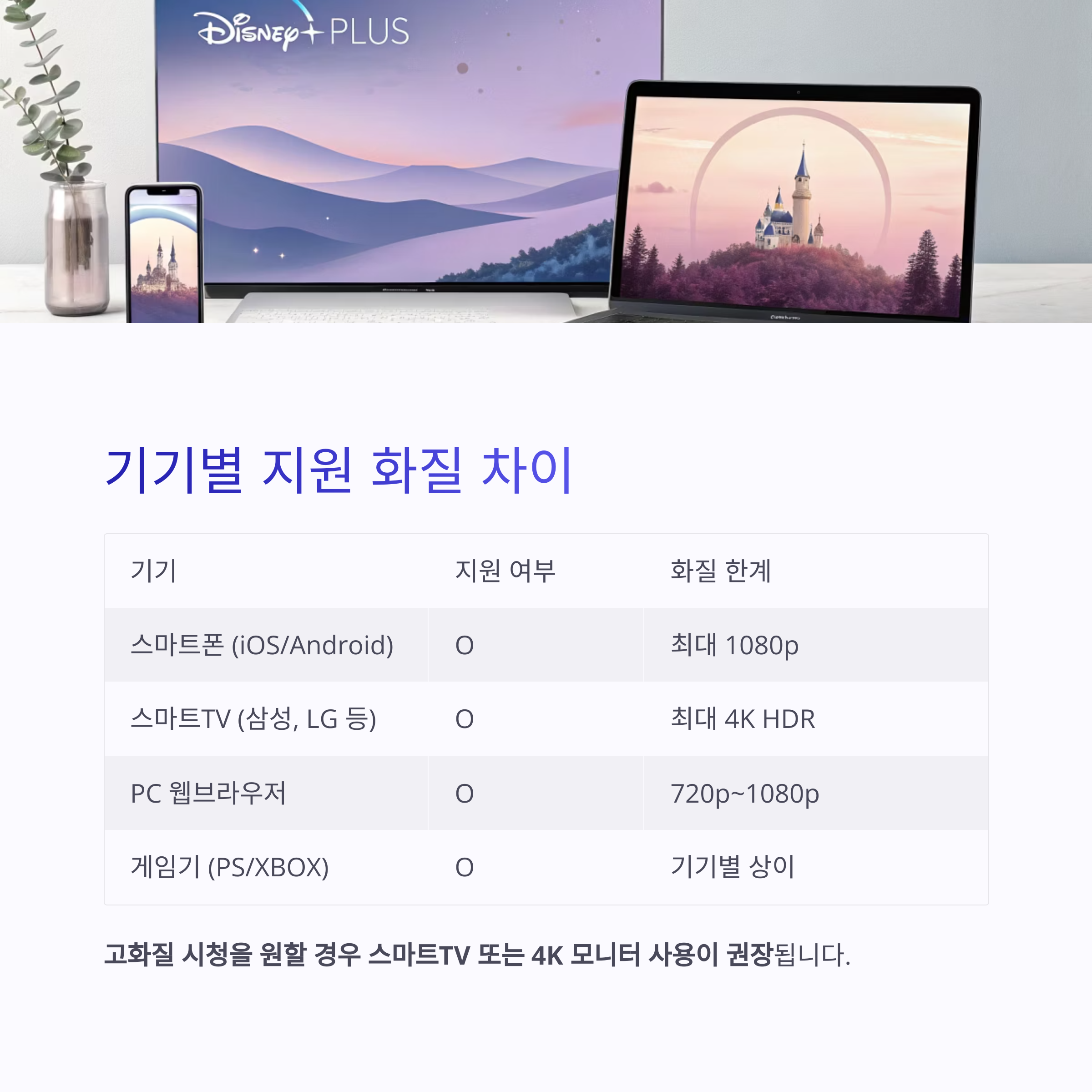 고화질 시청을 원할 경우 스마트TV 또는 4K 모니터 사용이 권장됩니다.