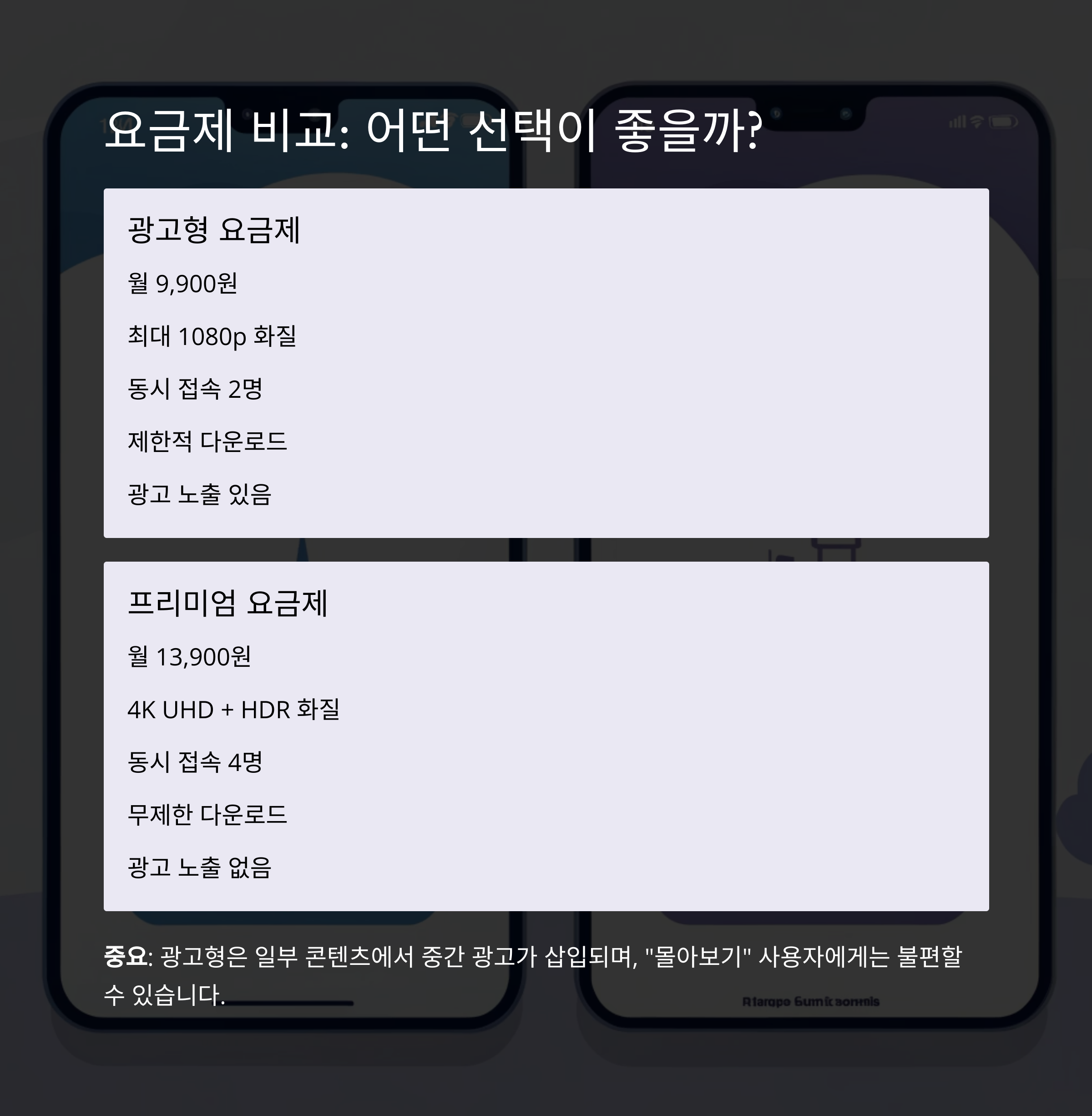 광고형 요금제는 저렴하지만 화질과 기능이 제한되며,