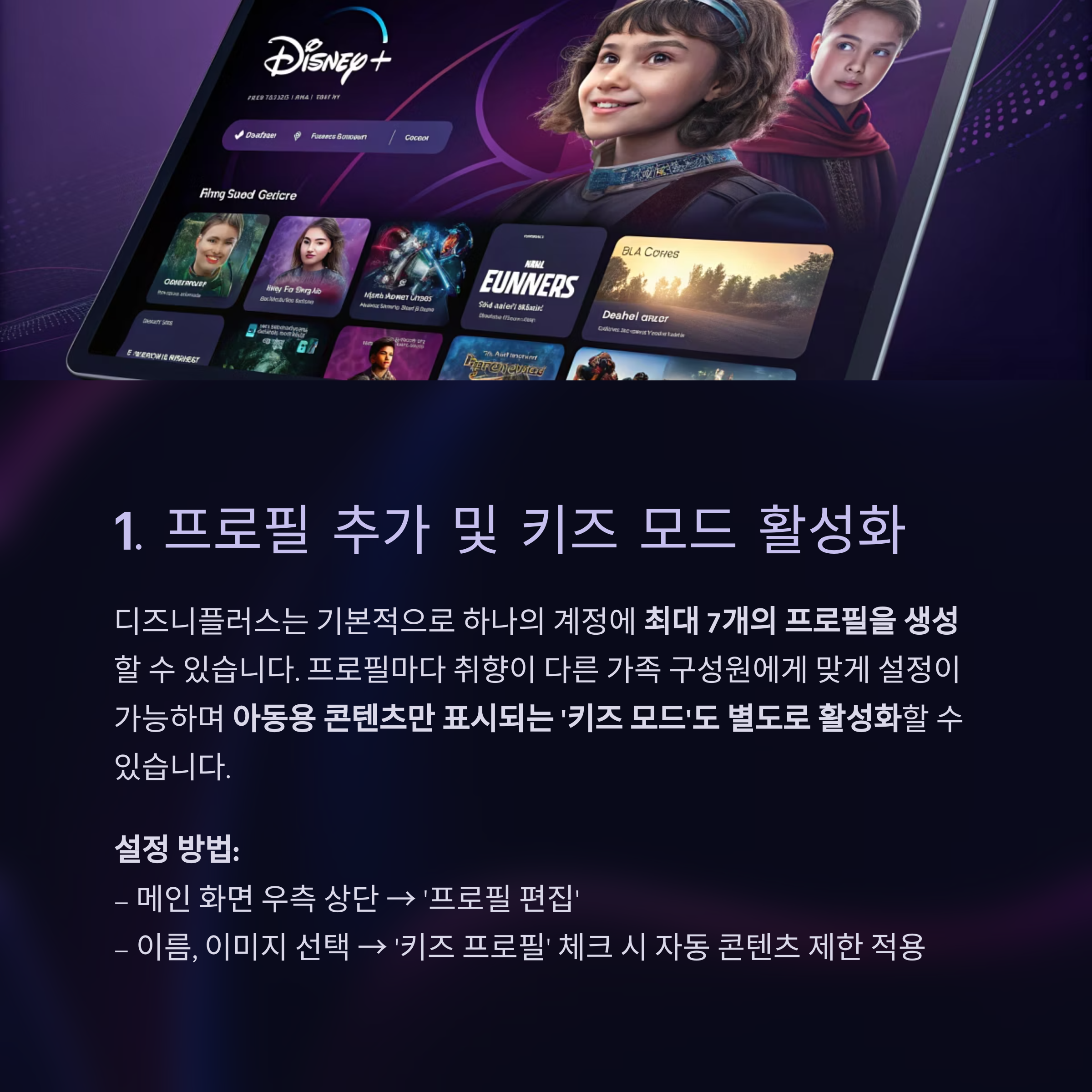 | 프로필 구성 | 키즈 모드, 최대 7인 | 가족별 시청 분리 |