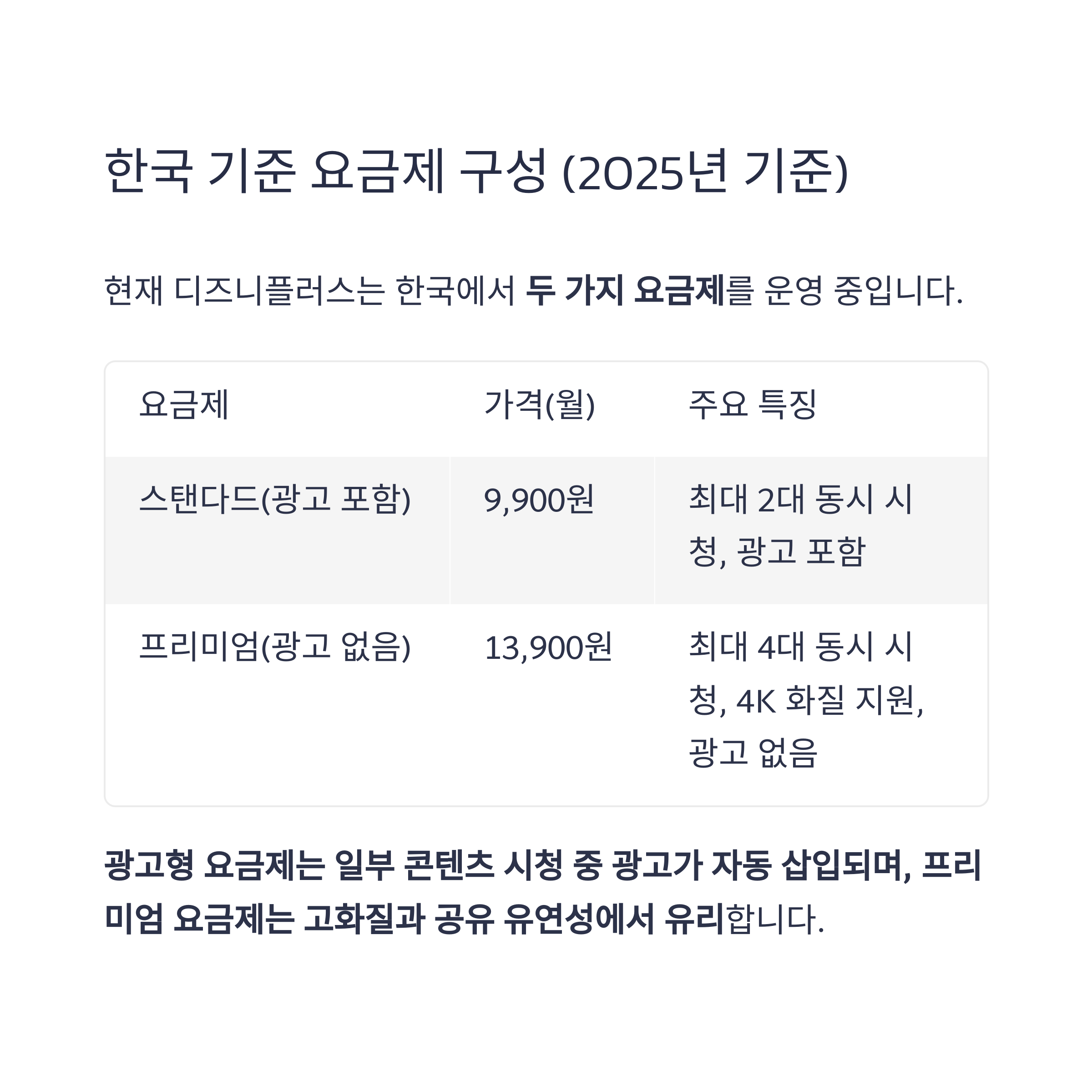 현재 디즈니플러스는 한국에서 두 가지 요금제를 운영 중입니다.