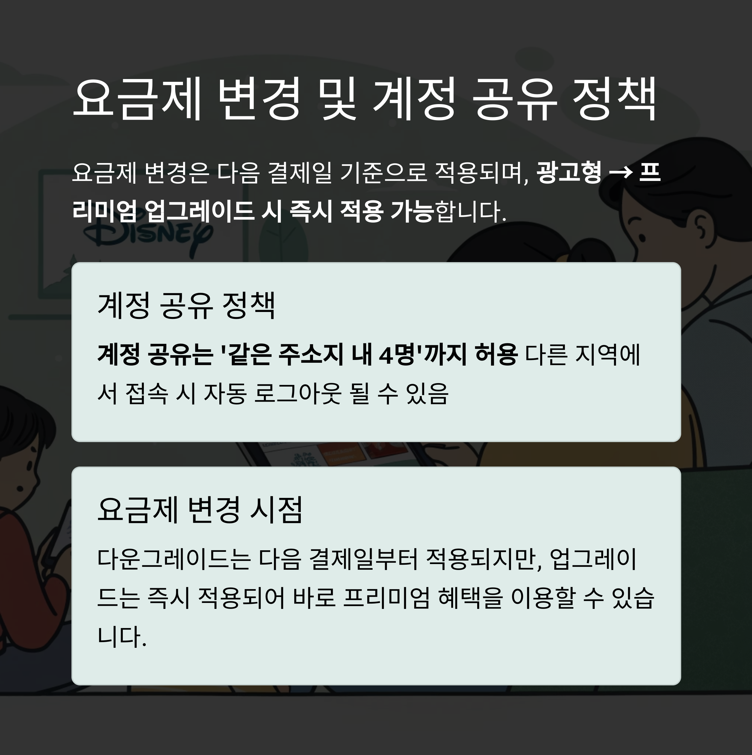 | 요금제 변경 | 다음 결제일 기준 변경, 업그레이드 즉시 적용 가능 |