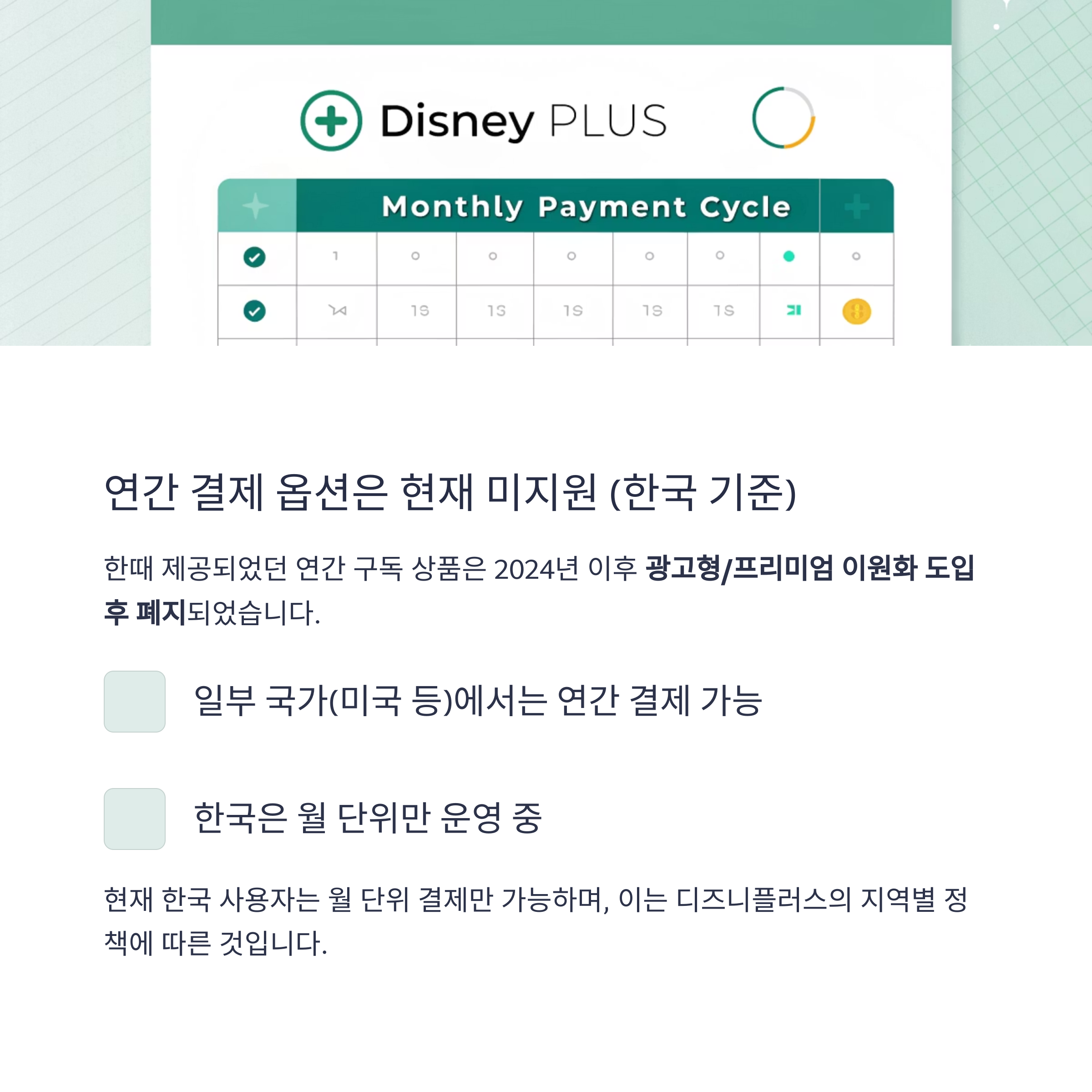 5. 연간 결제 옵션은 현재 미지원 (한국 기준)