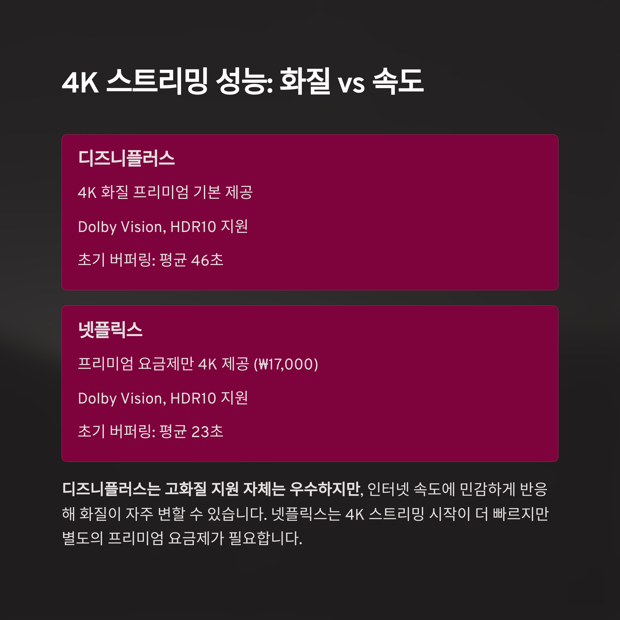 | 4K 화질 | 프리미엄 기본 제공 | 프리미엄 요금제만 제공 (₩17,000) |