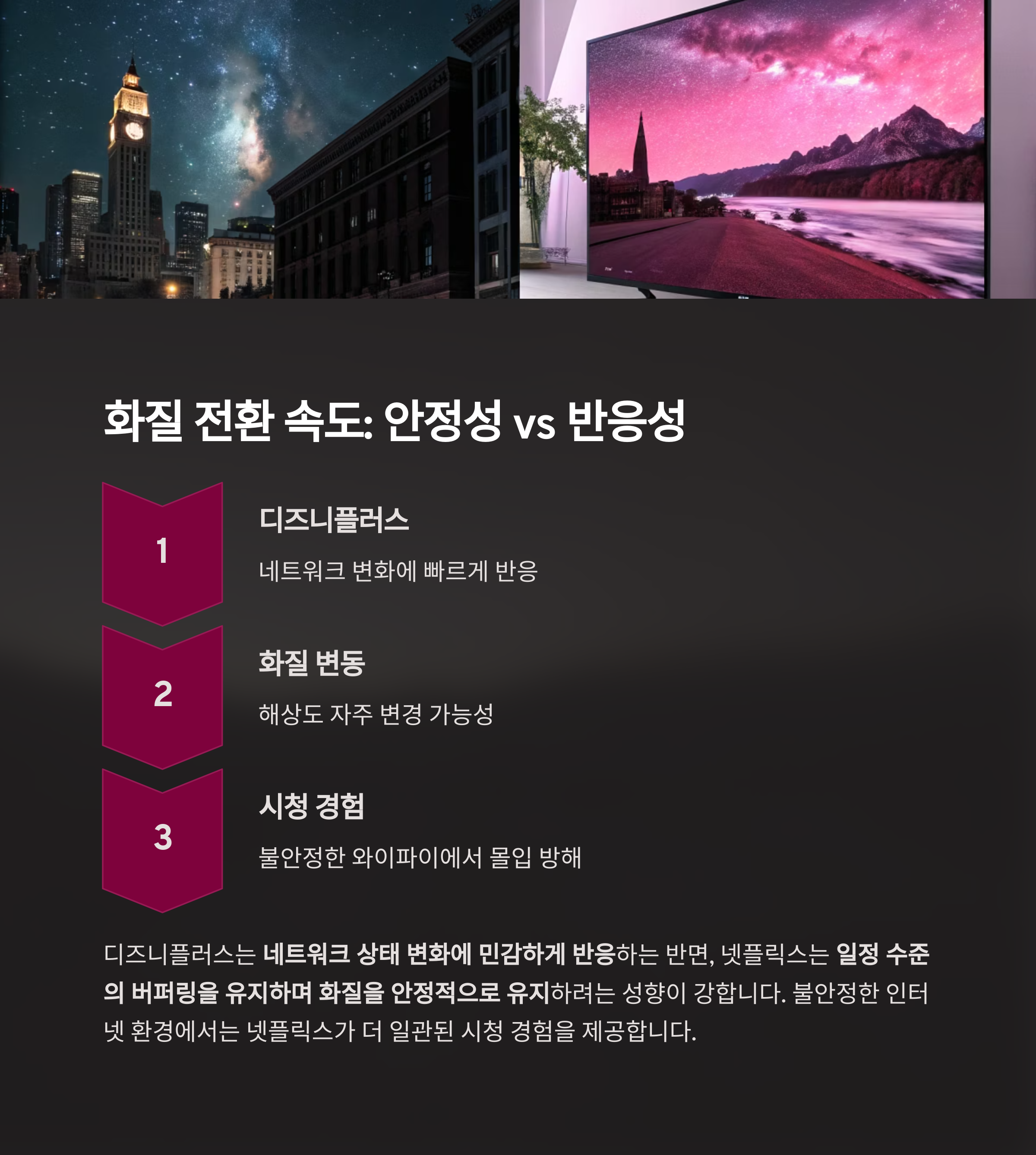 2. 화질 전환 속도: 디즈니플러스가 더 민감하게 반응