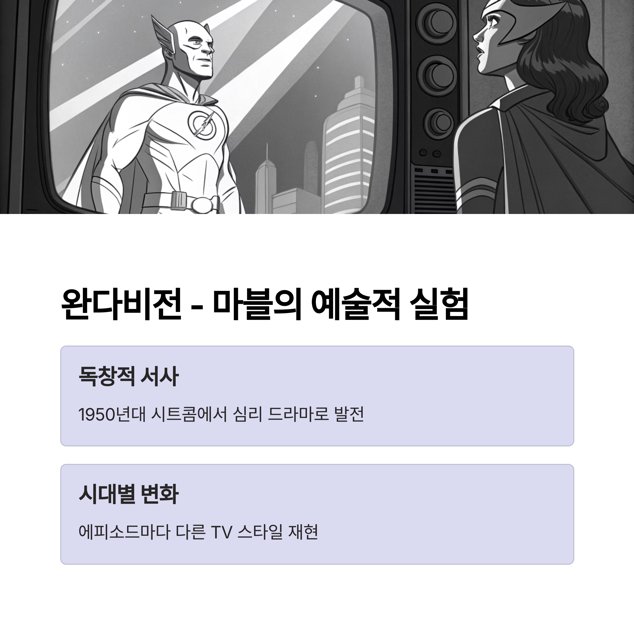 시청자에게 혼란과 흥미를 동시에 안기며 “마블의 예술적 실험”으로 평가받았습니다.