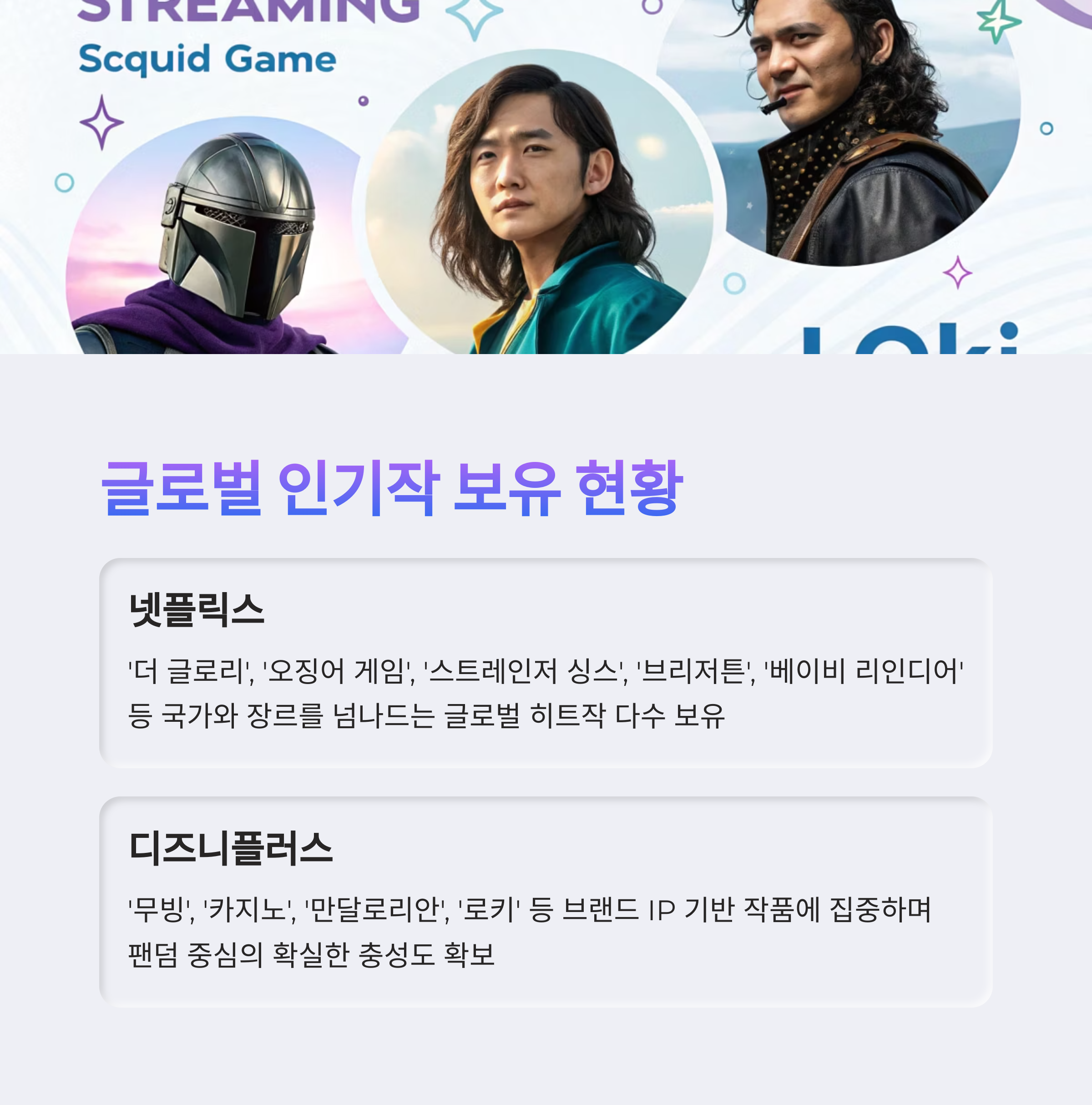 3. 글로벌 인기작 보유: 넷플릭스 우위, 디즈니는 브랜드 집중