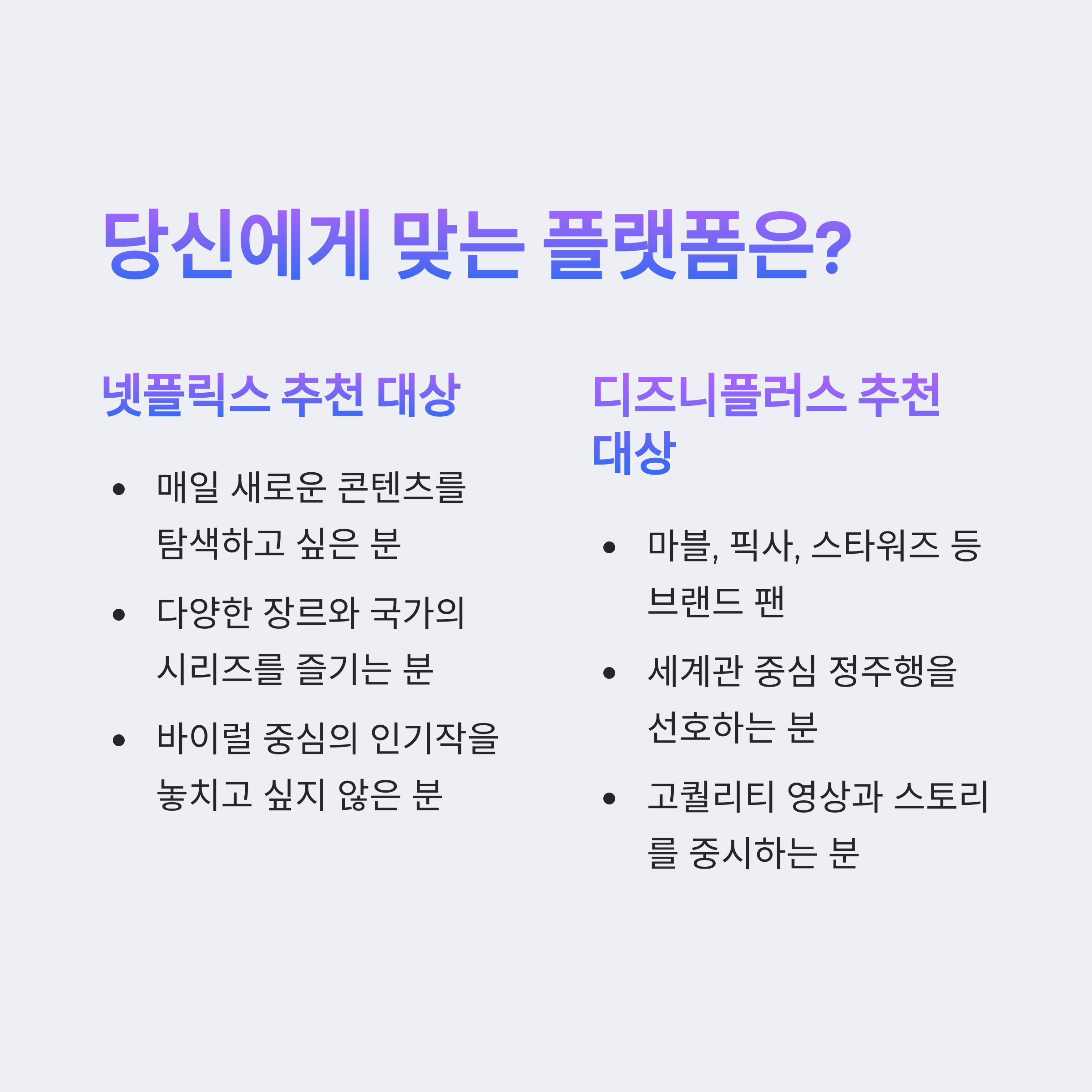 결론: "스토리 연계성과 몰입을 중시하는 팬층에겐 디즈니플러스가 강점"