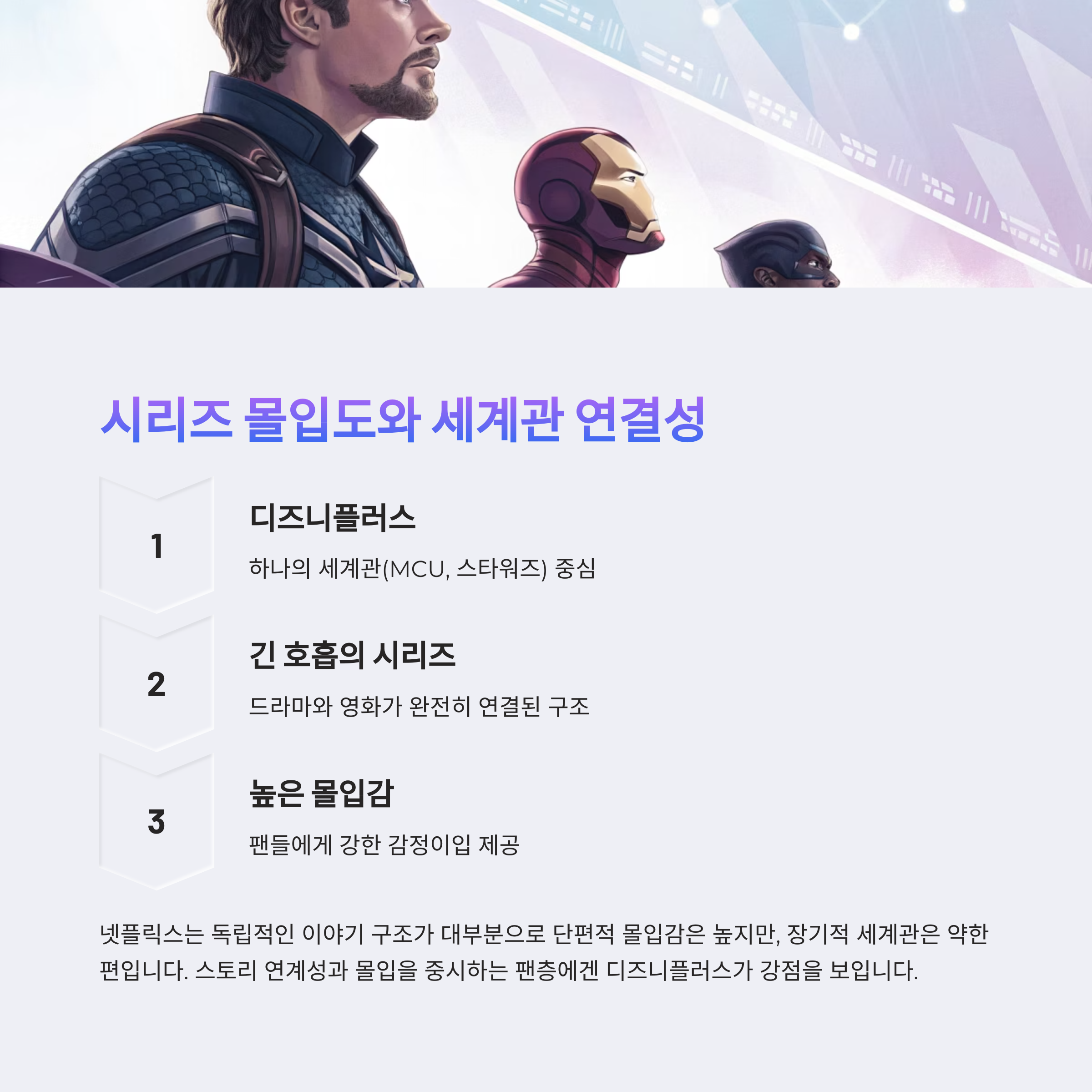 2. 시리즈 몰입도 & 세계관 연결성: 디즈니플러스 우세