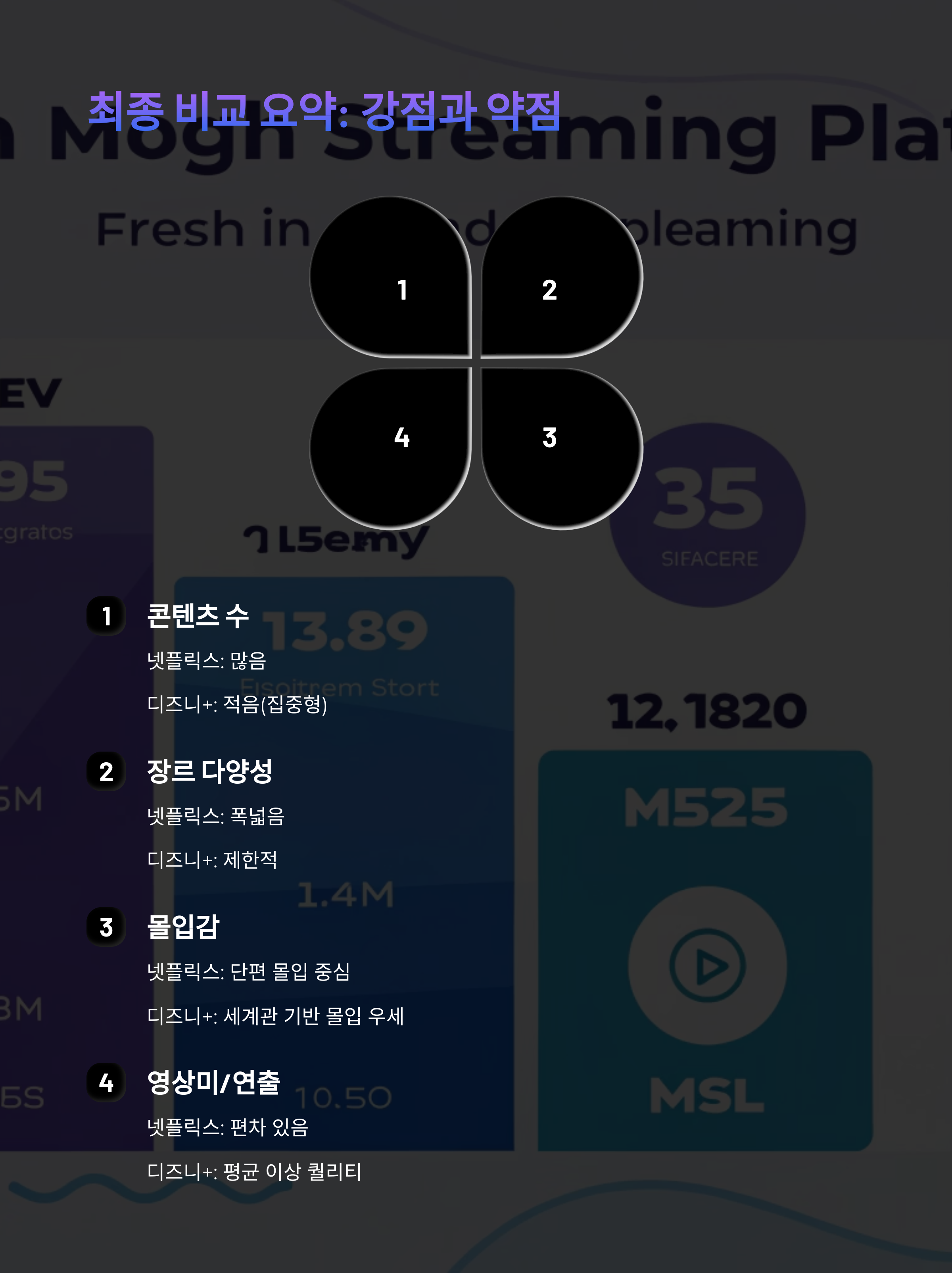 4. 콘텐츠 품질 & 완성도: 디즈니는 ‘선택과 집중’, 넷플릭스는 ‘양과 질의 조화’