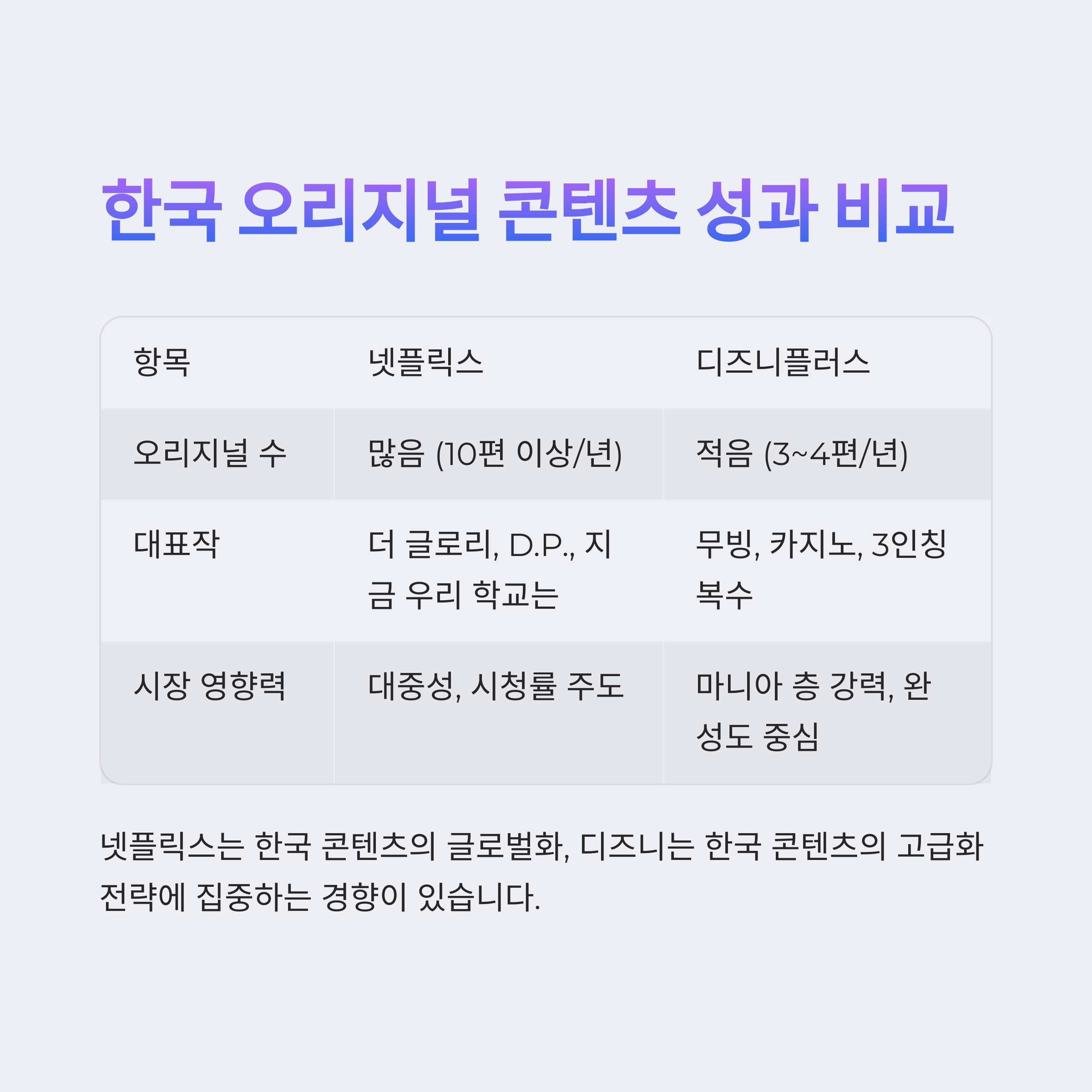 디즈니는 한국 콘텐츠의 고급화 전략에 집중하는 경향이 있습니다.