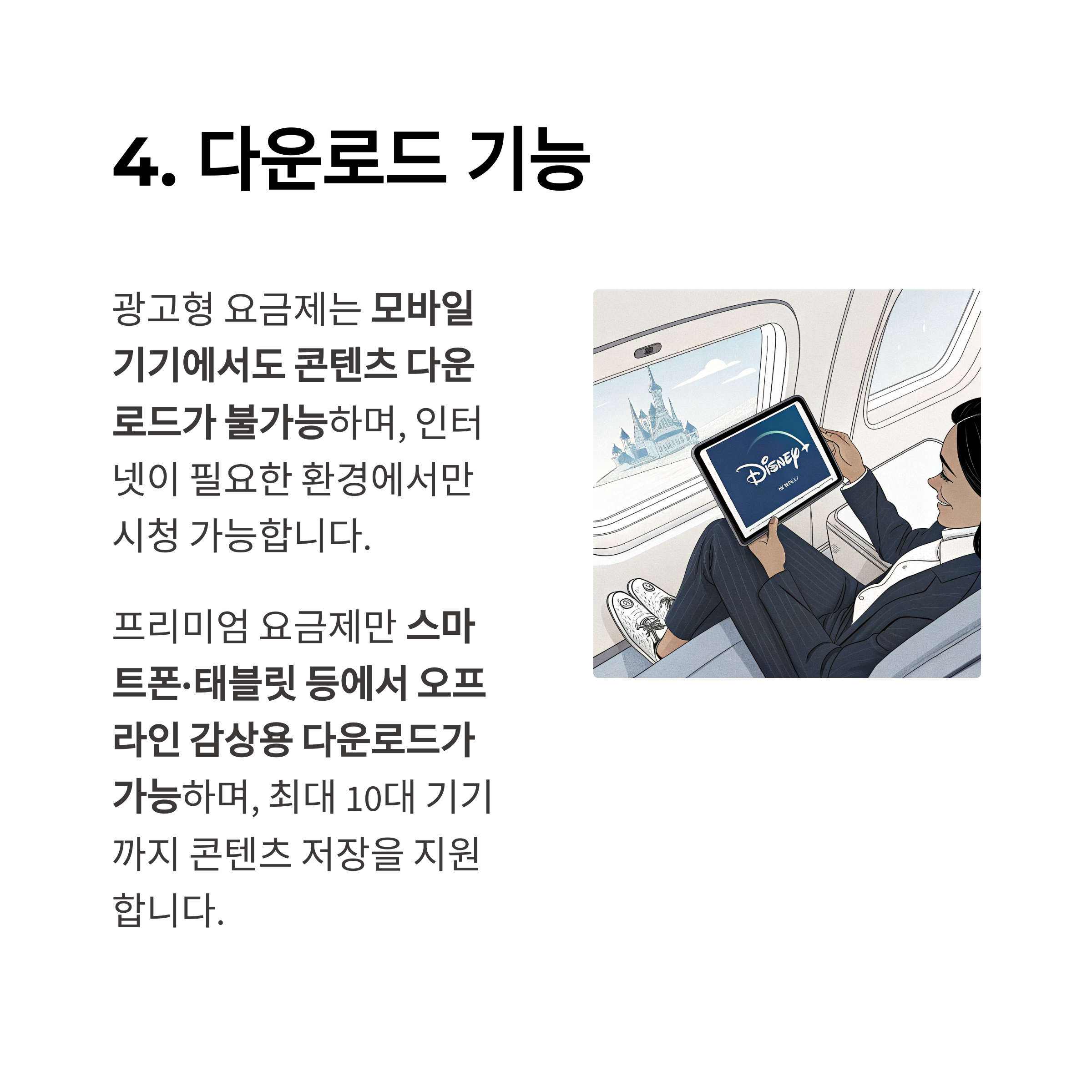 광고형 요금제는 모바일 기기에서도 콘텐츠 다운로드가 불가능하며,