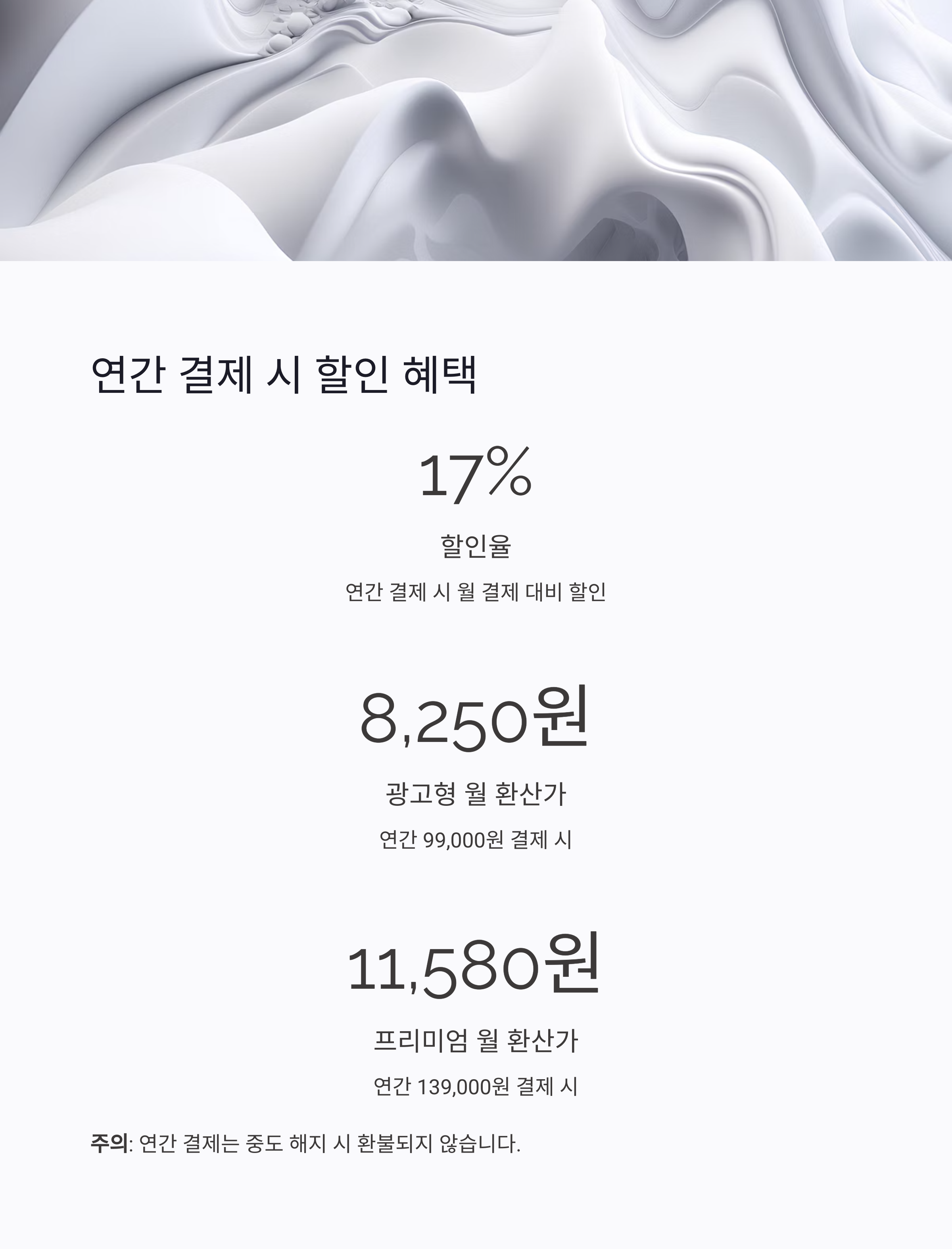 중요: 연간 결제는 중도 해지 시 환불되지 않으므로 신중히 선택해야 합니다.