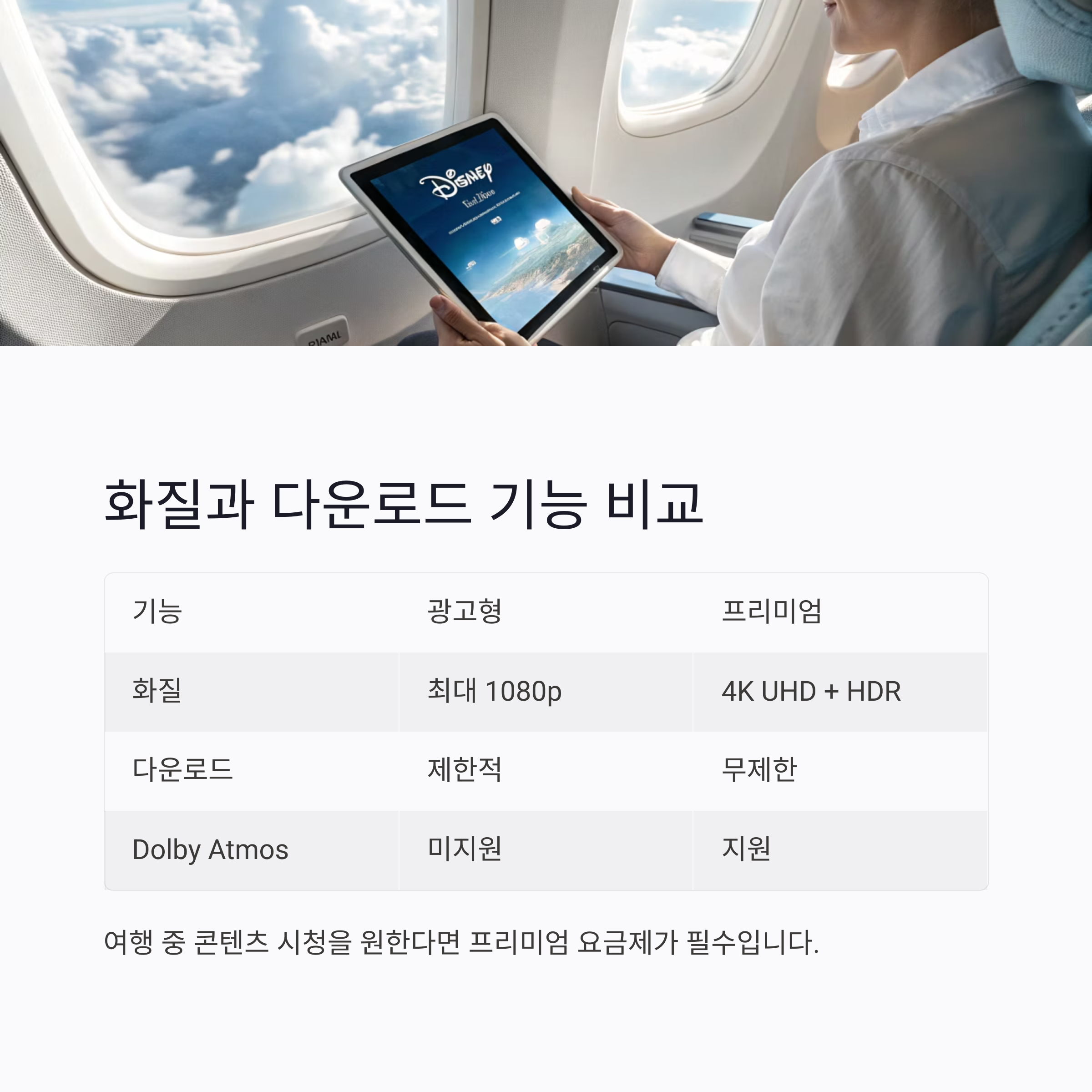 콘텐츠를 여행 중에도 보고 싶다면 프리미엄 요금제가 필수입니다.
