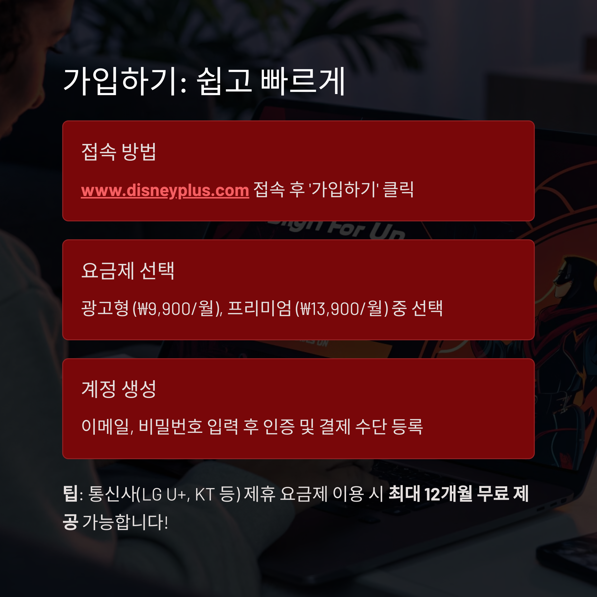 | 접속 | www.disneyplus.com 접속 후 ‘가입하기’ 클릭 |