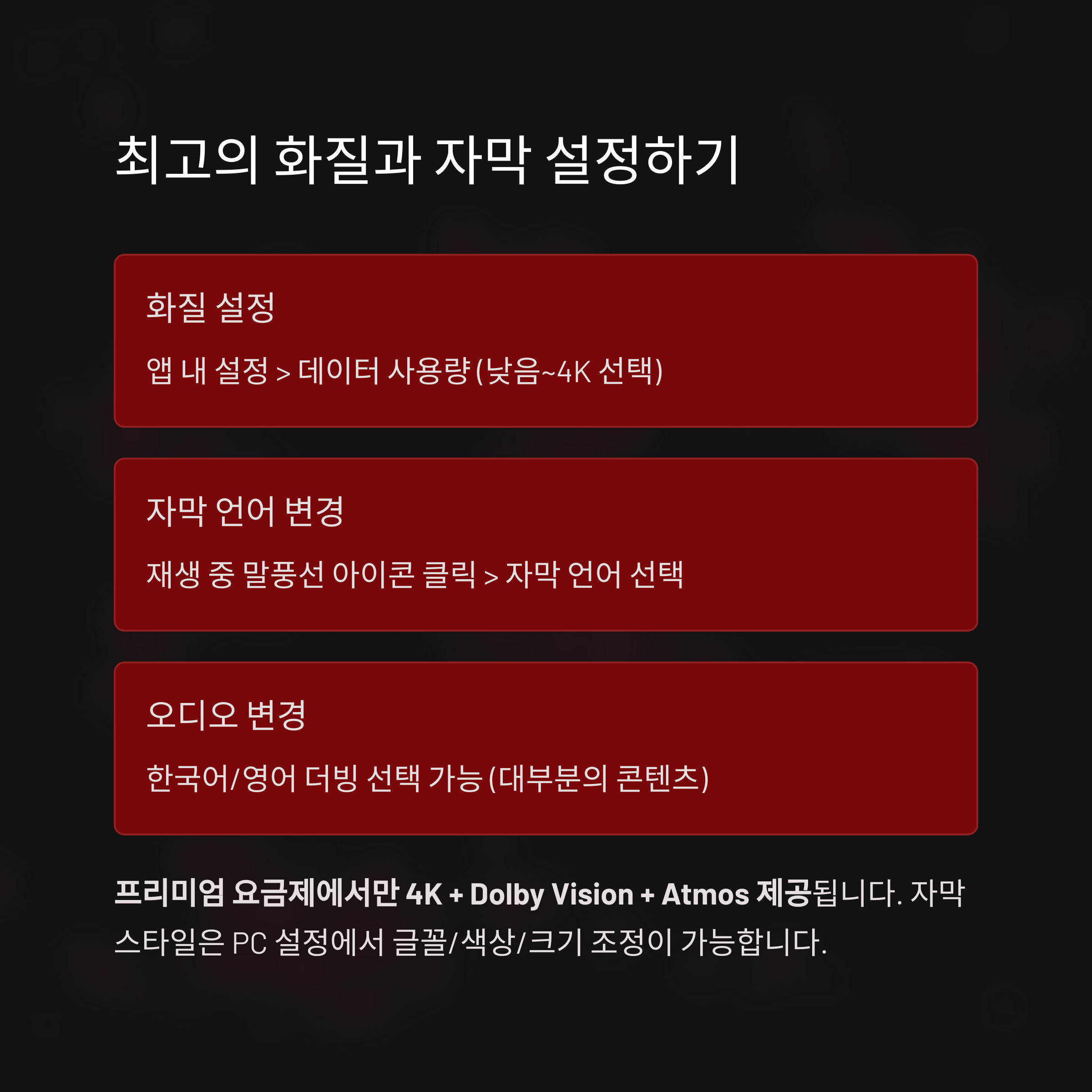 | 언어 설정 | 언어별 자막/오디오 개별 설정 가능 |