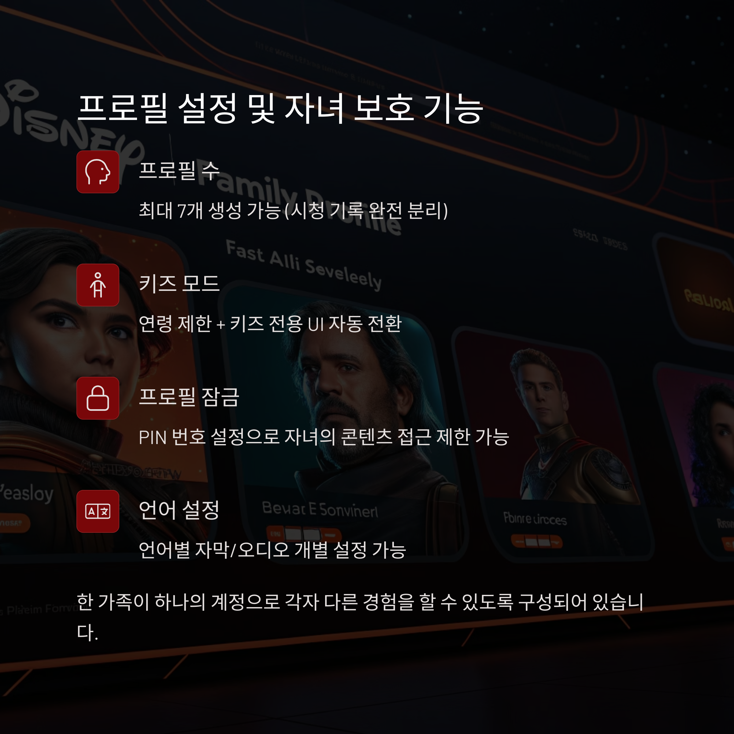 | 프로필 수 | 최대 7개 생성 가능 (시청 기록 완전 분리) |