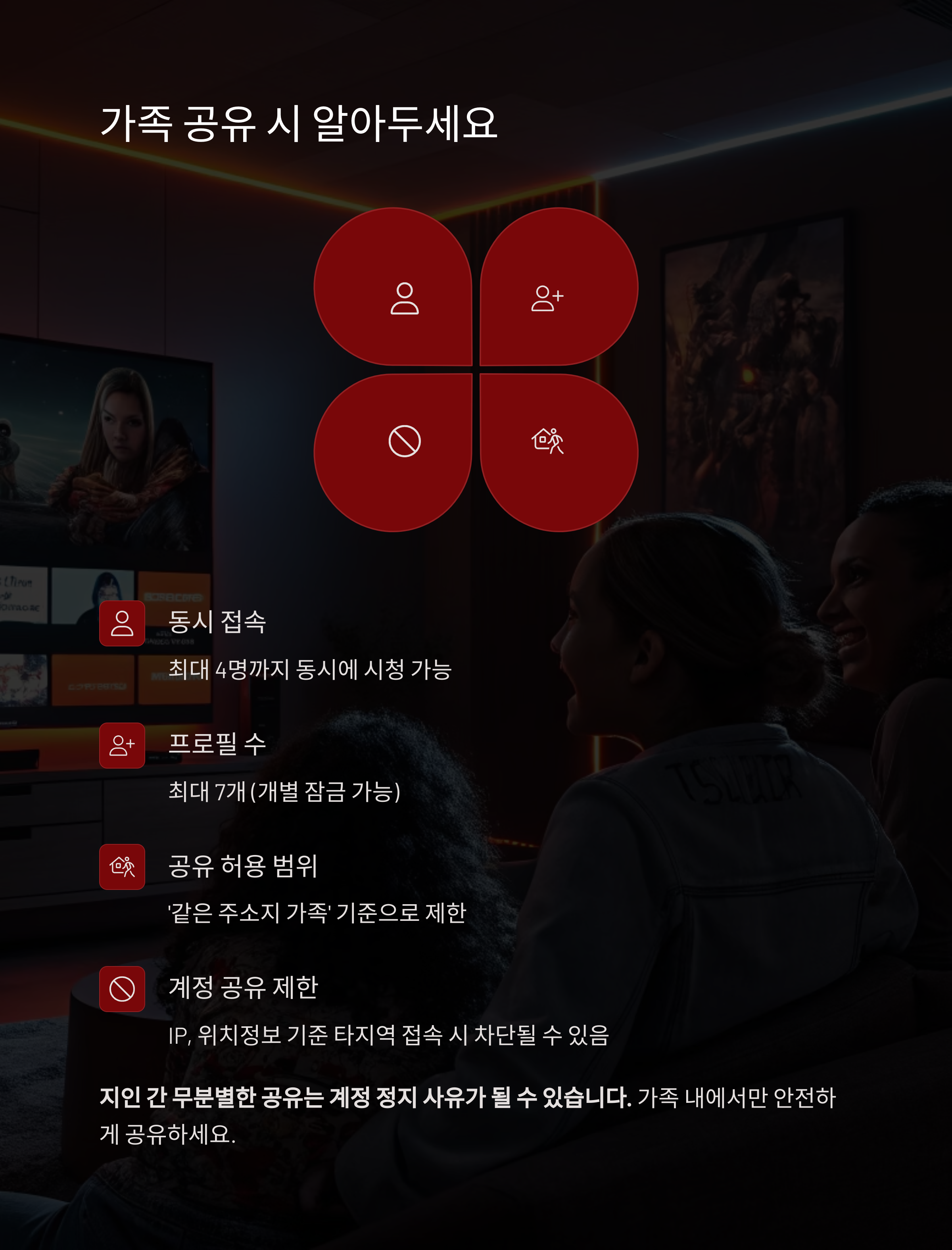 | 동시 접속 | 최대 4명까지 동시에 시청 가능 |