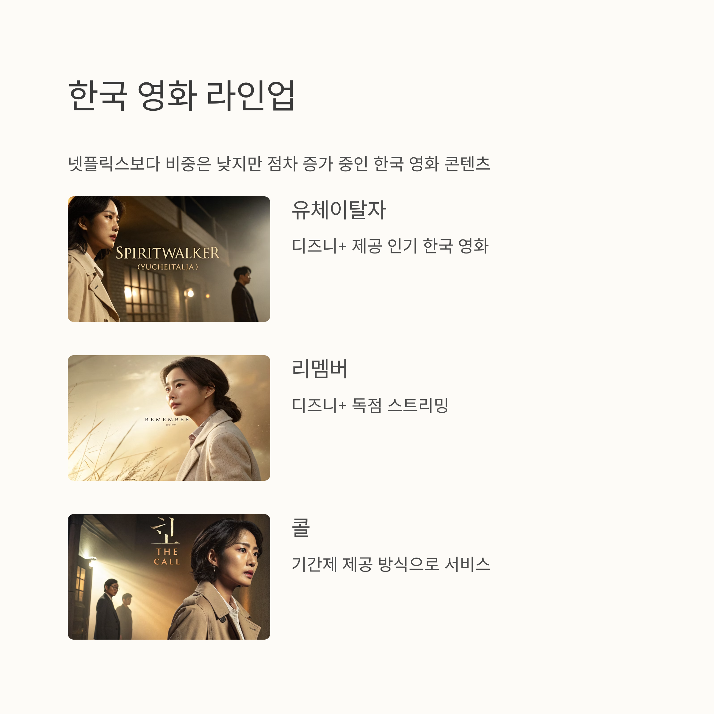 디즈니+ 오리지널 영화 또는 제휴 영화가 점차 증가 중입니다.