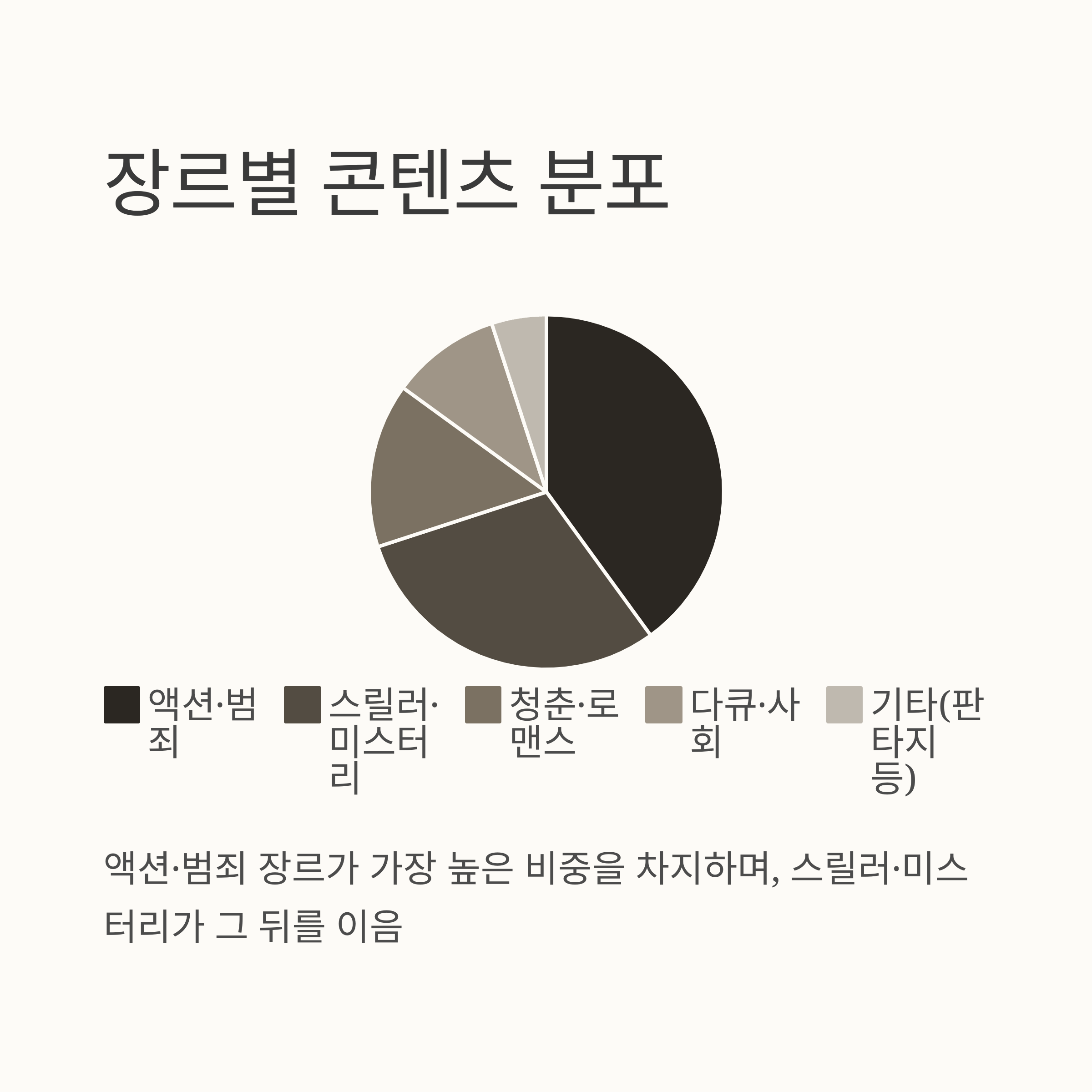 | 액션·범죄 | 무빙, 카지노, 형사록 | 약 40% |