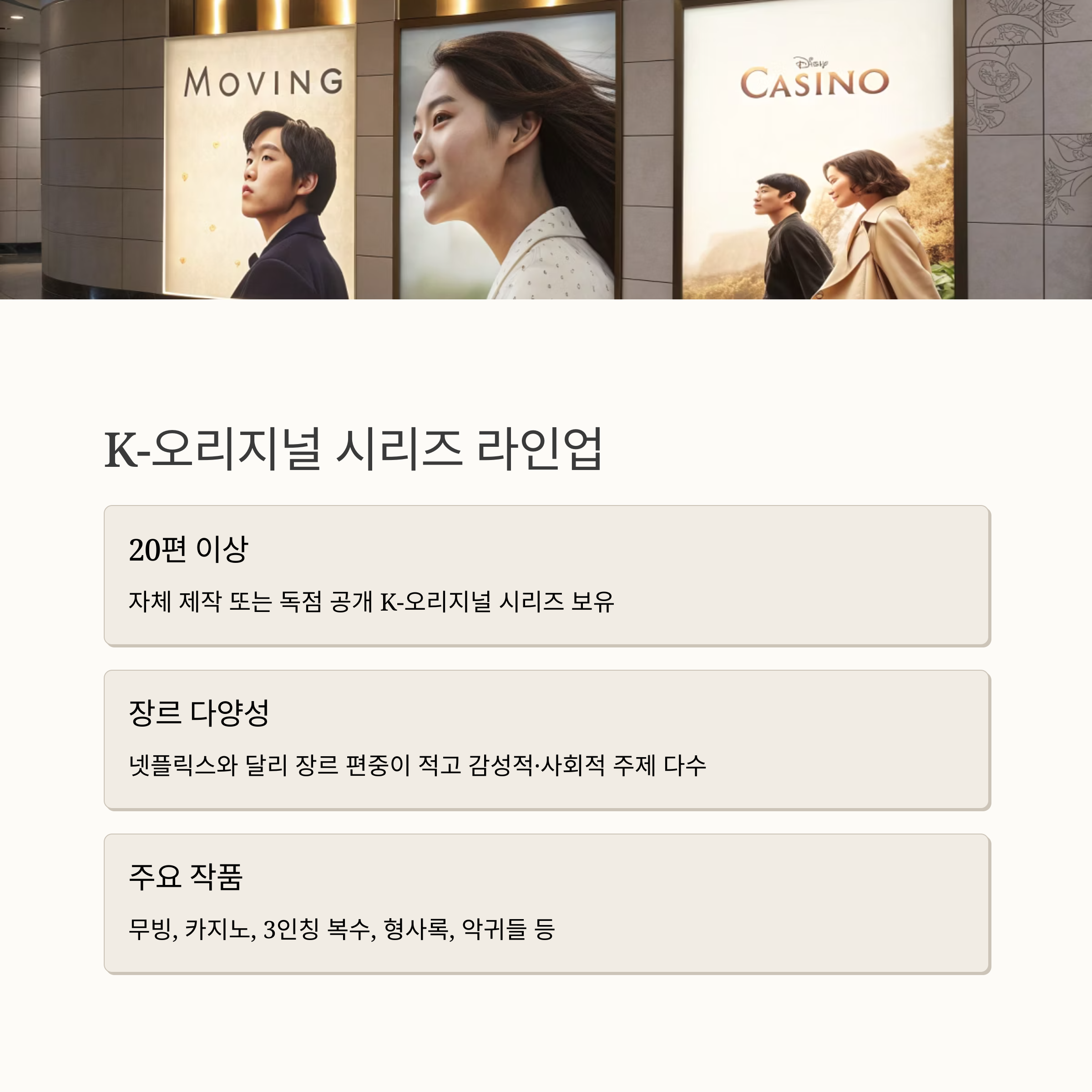 핵심: 넷플릭스와 달리, 장르 편중이 적고 감성적·사회적 주제를 많이 다룸