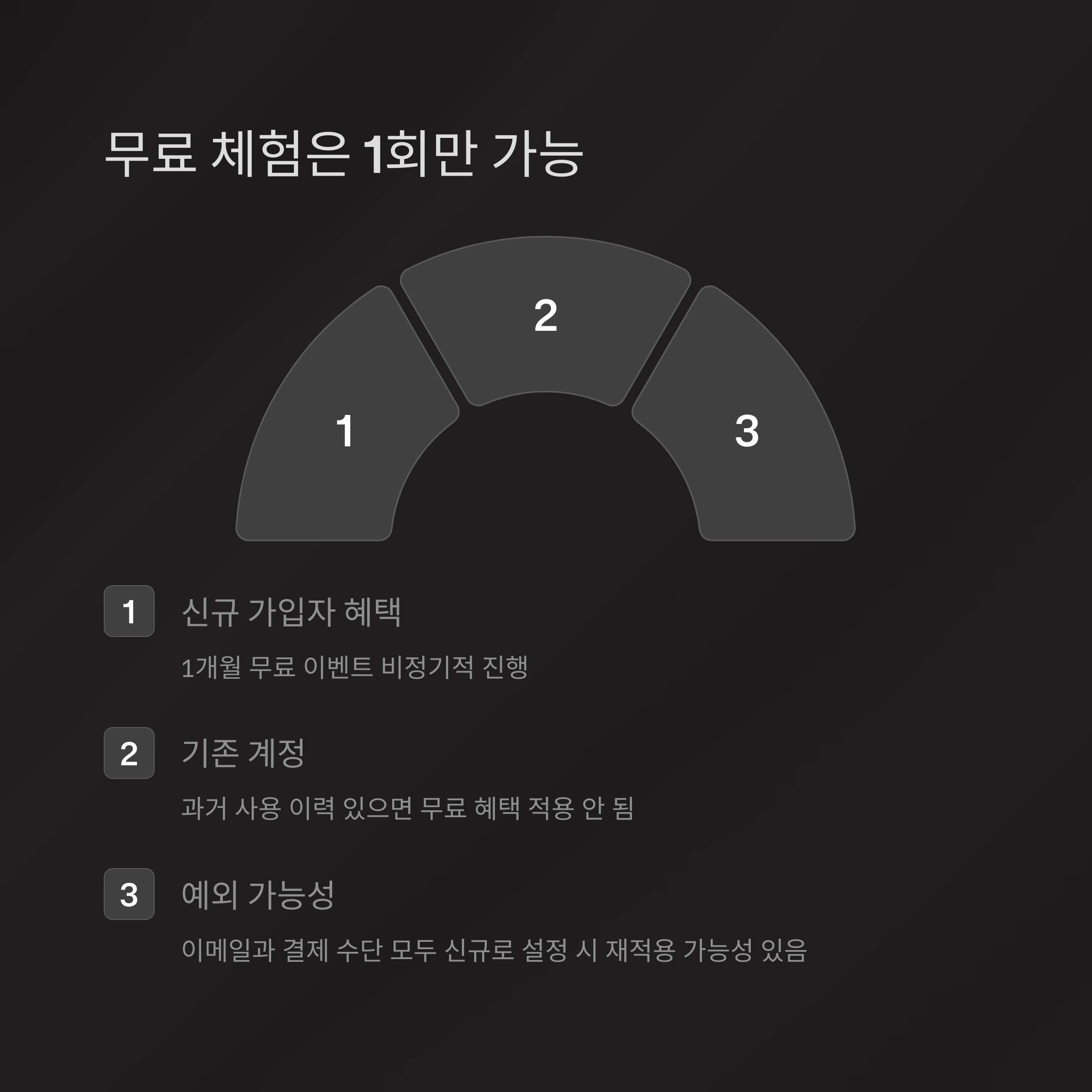 6. 무료 체험은 ‘1회 한정’, 재가입 시 적용되지 않음