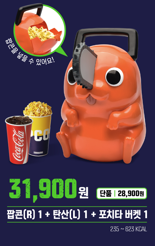 바로 극장판 체인소맨 레제편을 기념하며 메가박스에서 단독으로 선보인 메가박스 포치타 팝콘통인데요.