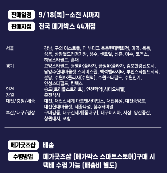 전국 메가박스 일부 지점과 온라인 메가굿즈샵에서 만날 수 있으니, 품절되기 전에 미리 확인하고 방문해보시는 건 어떨까요?
