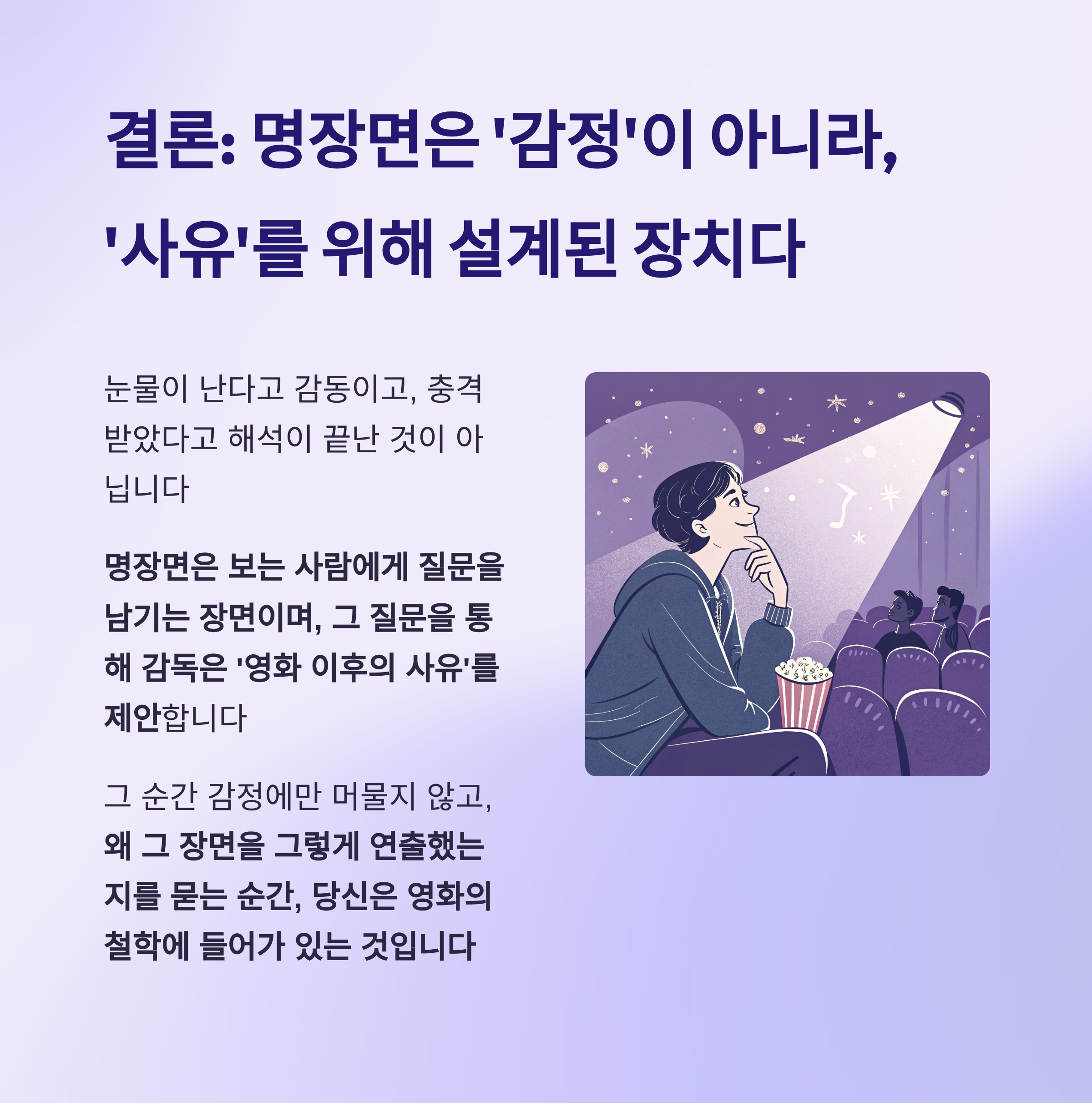 결론: 명장면은 ‘감정’이 아니라, ‘사유’를 위해 설계된 장치다