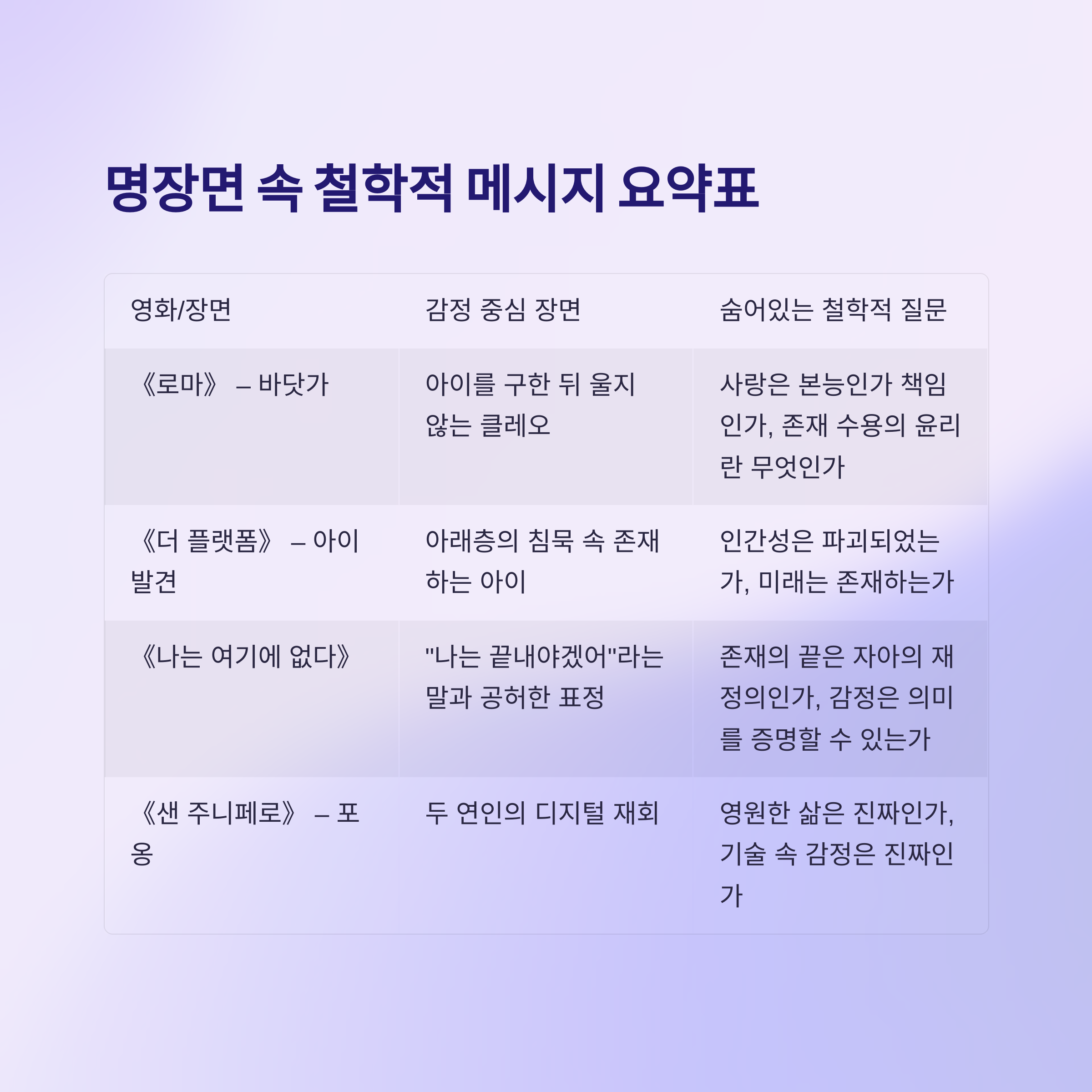 명장면 속 철학적 메시지 요약표