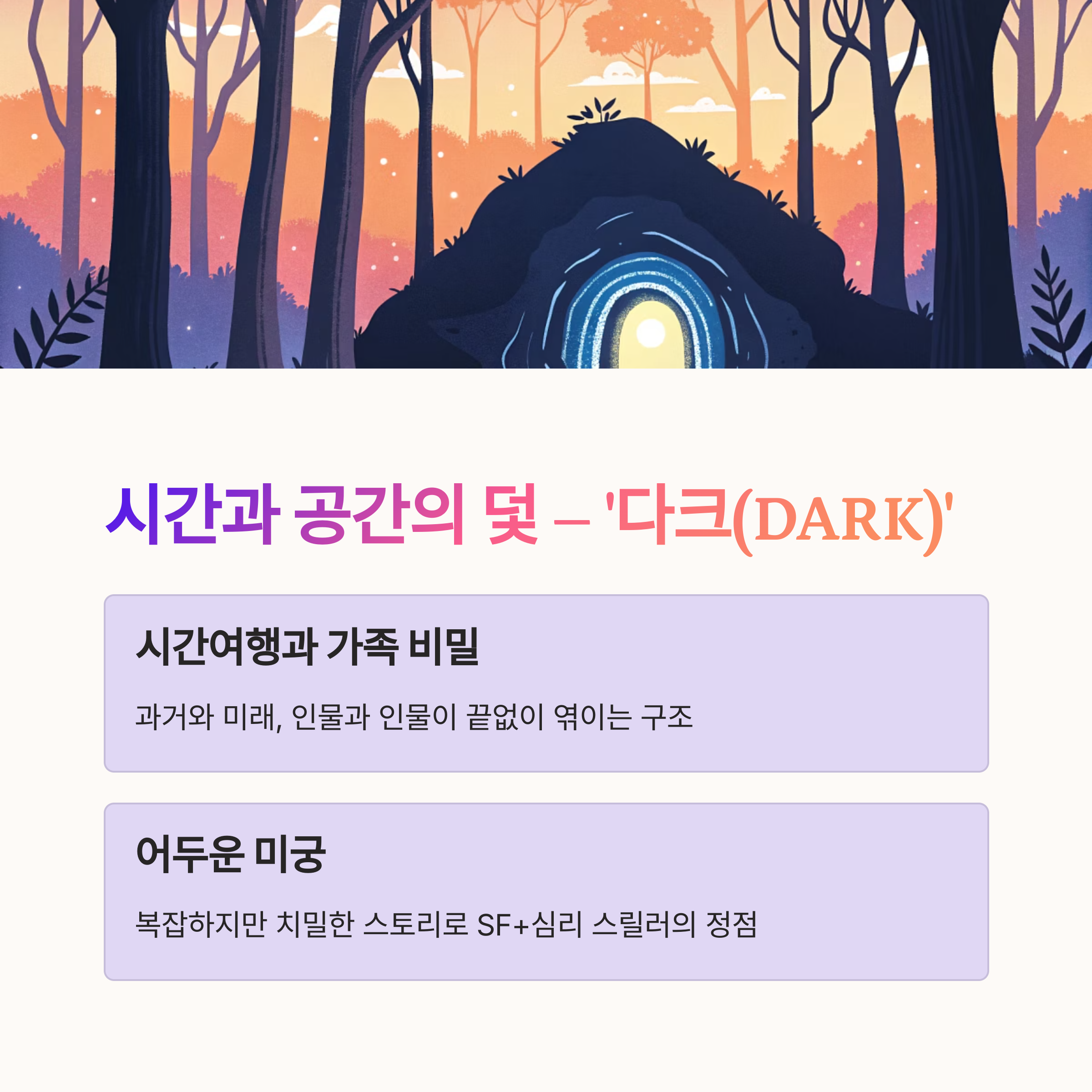 | 다크 (Dark) | 시간여행/미스터리 | 인물 구조 복잡, 전개 압도적 |