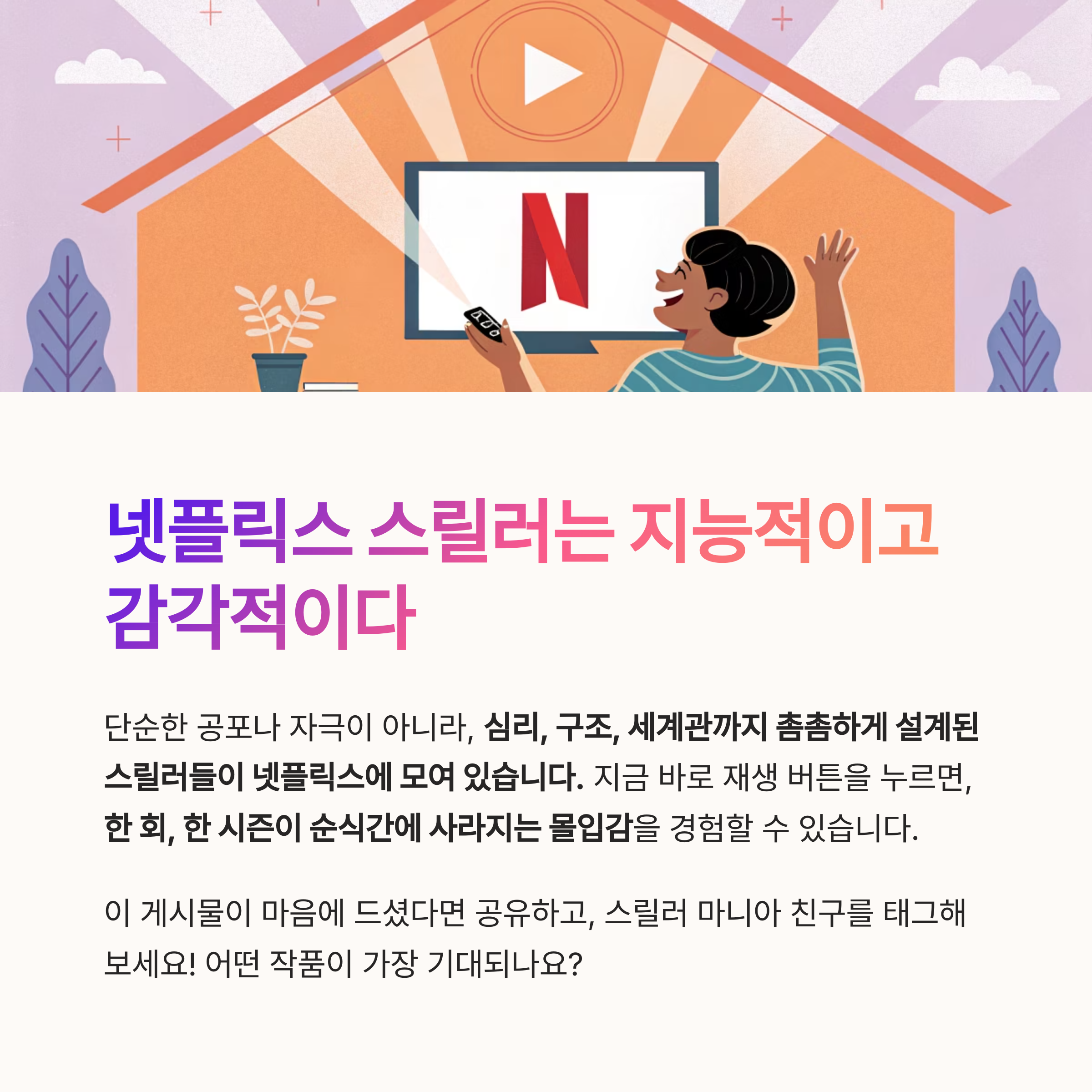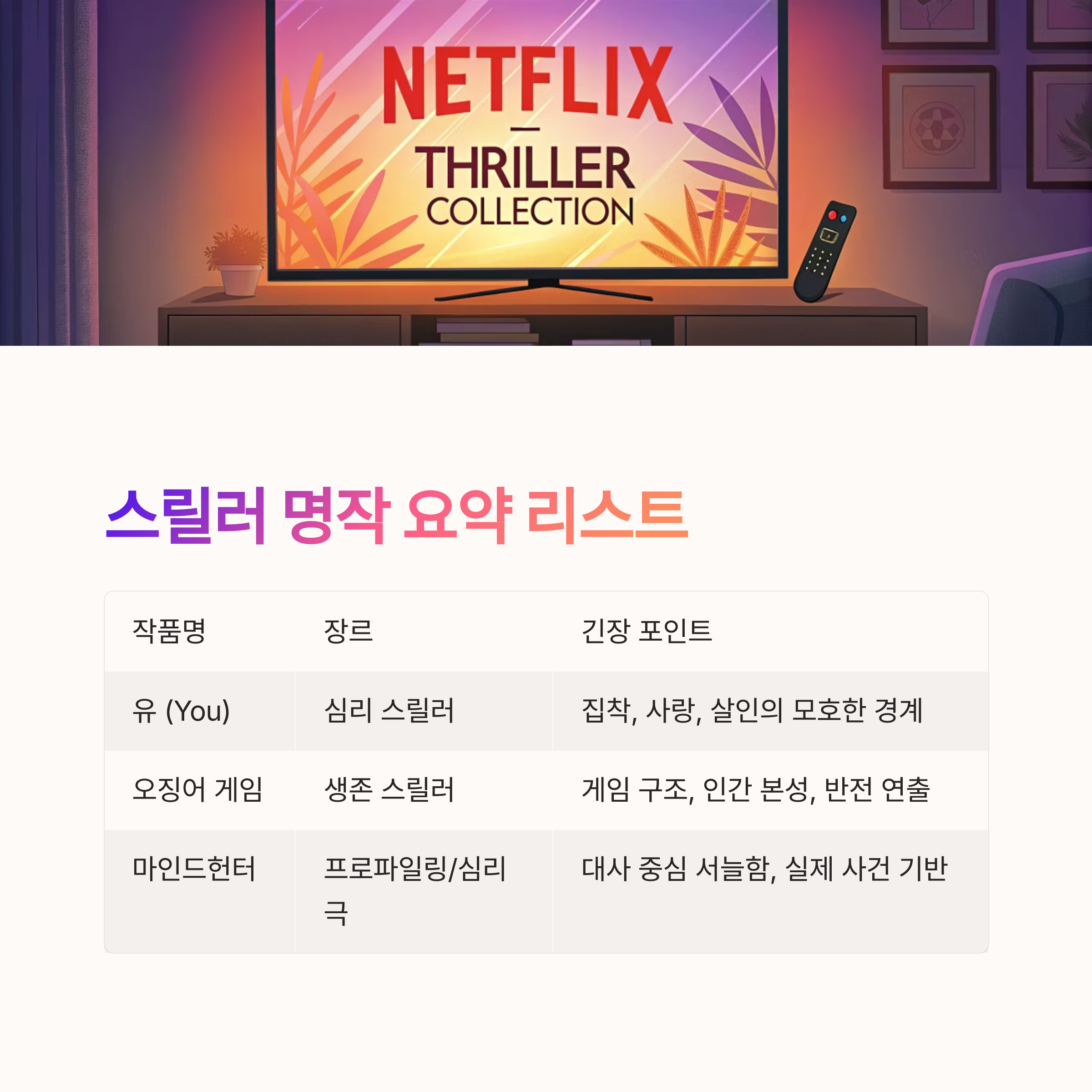심장 쫄깃하게 만드는 넷플릭스 스릴러 추천작을 정리했습니다.