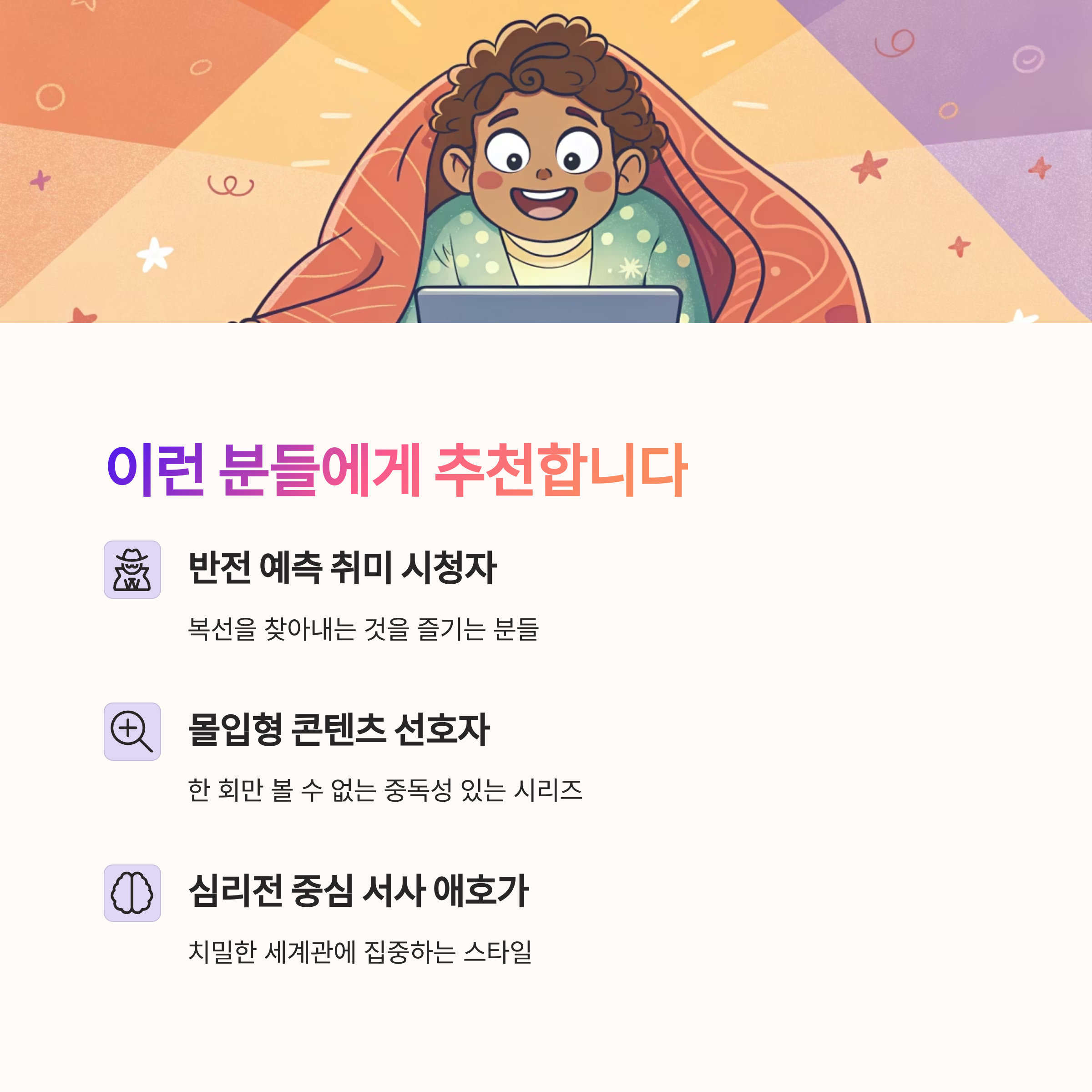 - 정적인 스릴러보다 심리전 중심의 서사를 좋아하는 분