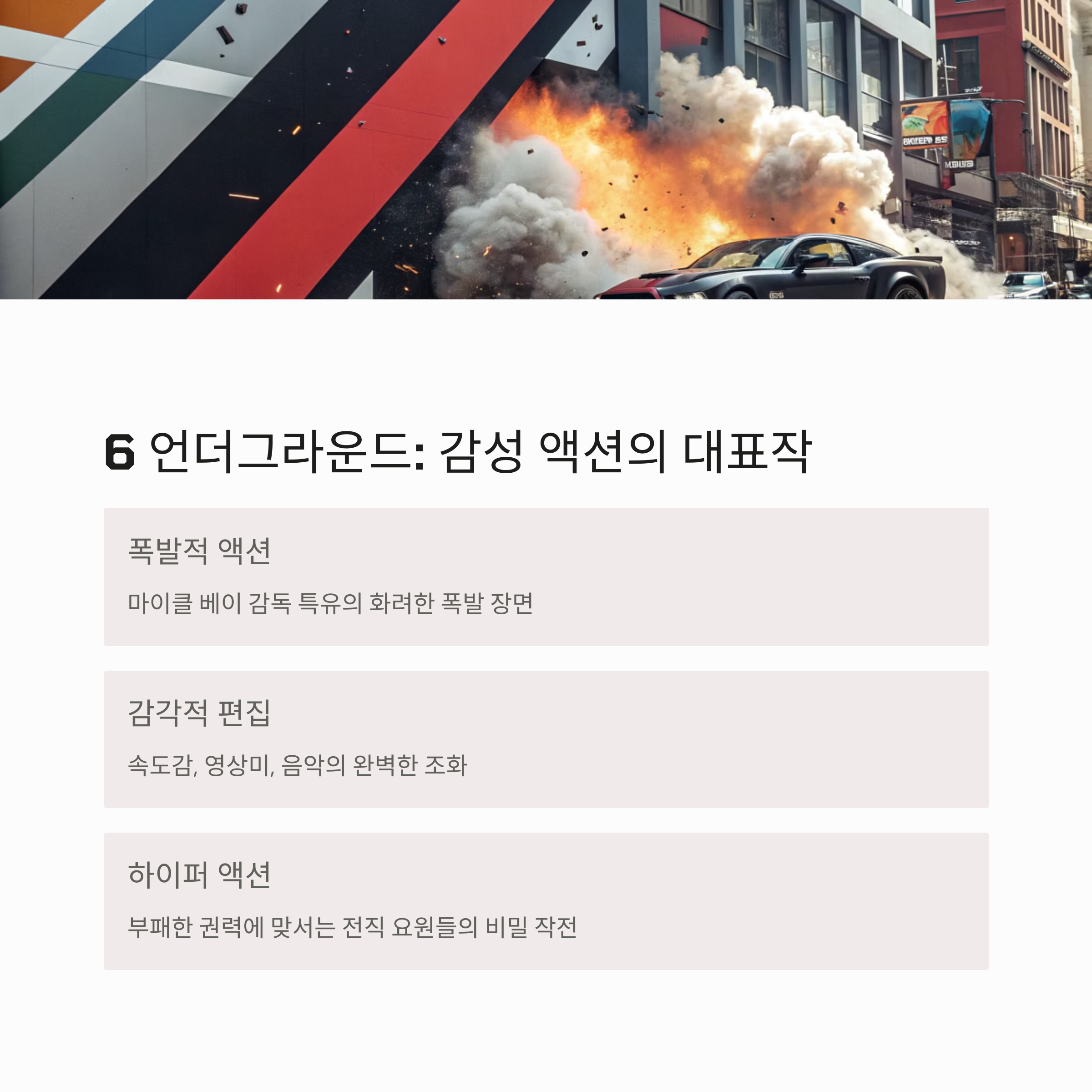 5. 감성 액션의 대표작 – ‘6 언더그라운드’