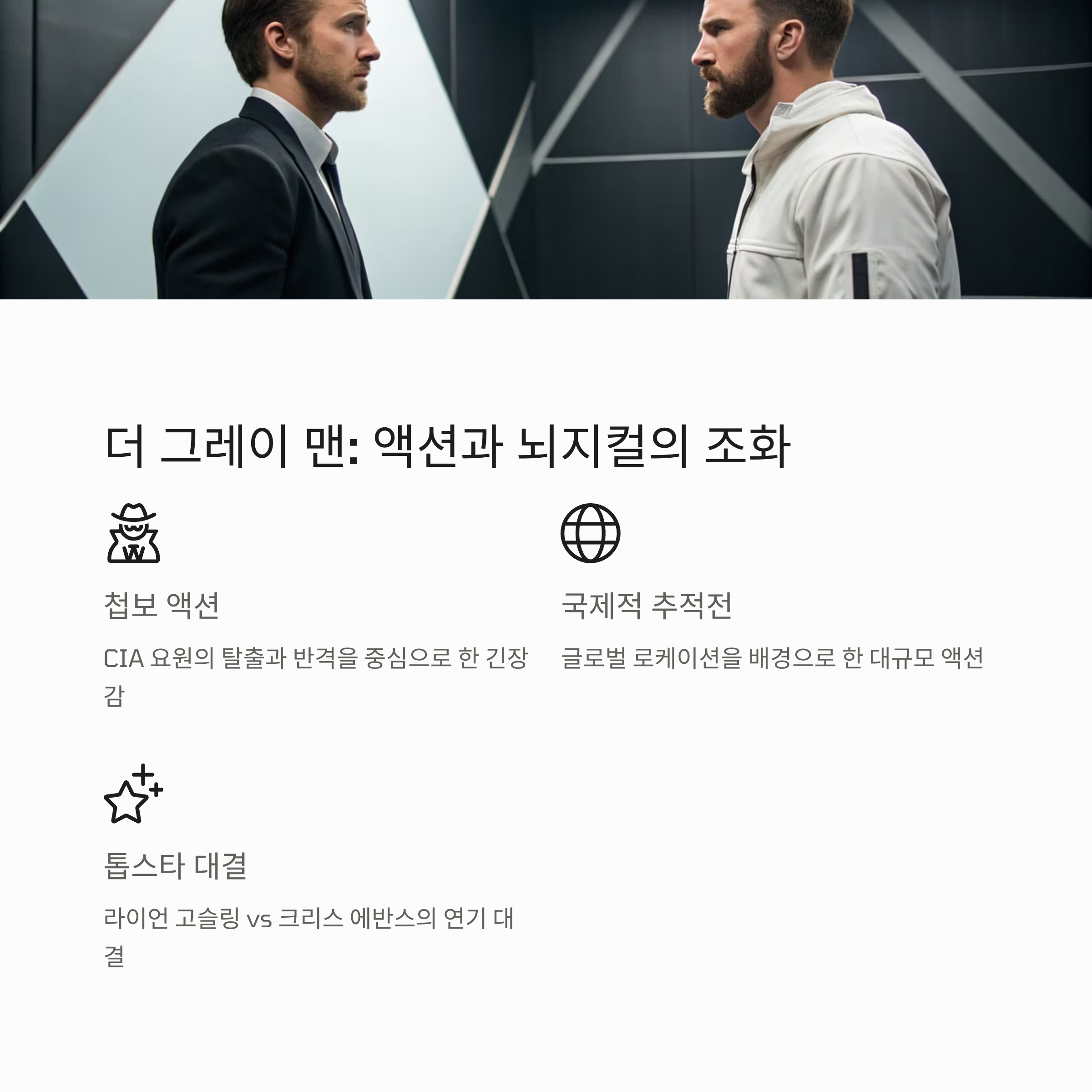 더 그레이 맨 | 첩보 액션 | ★★★★★ | 글로벌 로케이션, 이중 스파이 전개 |