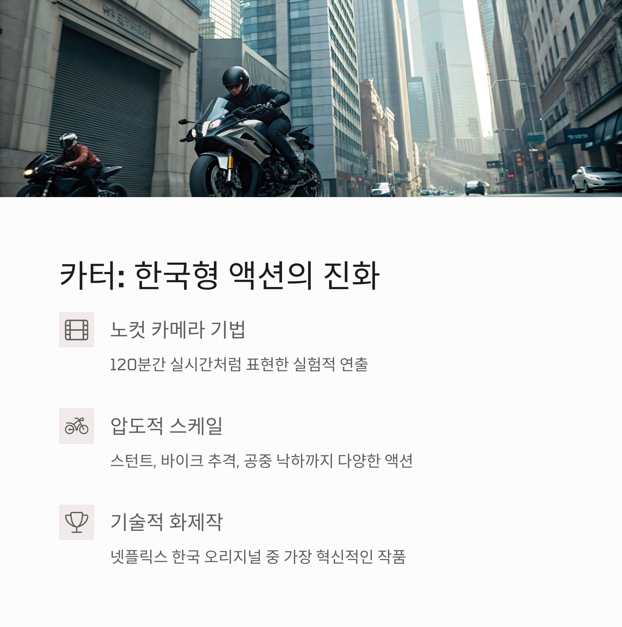 카터 | 리얼타임 액션 | ★★★★☆ | 원컷 연출, 도전적 시각 효과 |