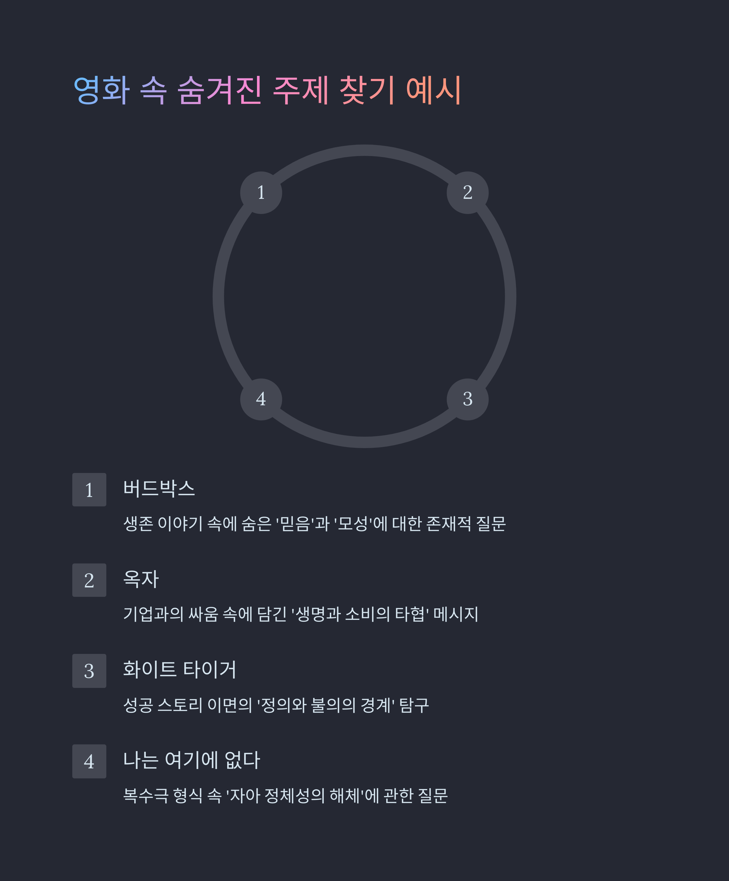 주제는 그 과정을 통해 감독이 묻고 싶은 핵심 메시지입니다