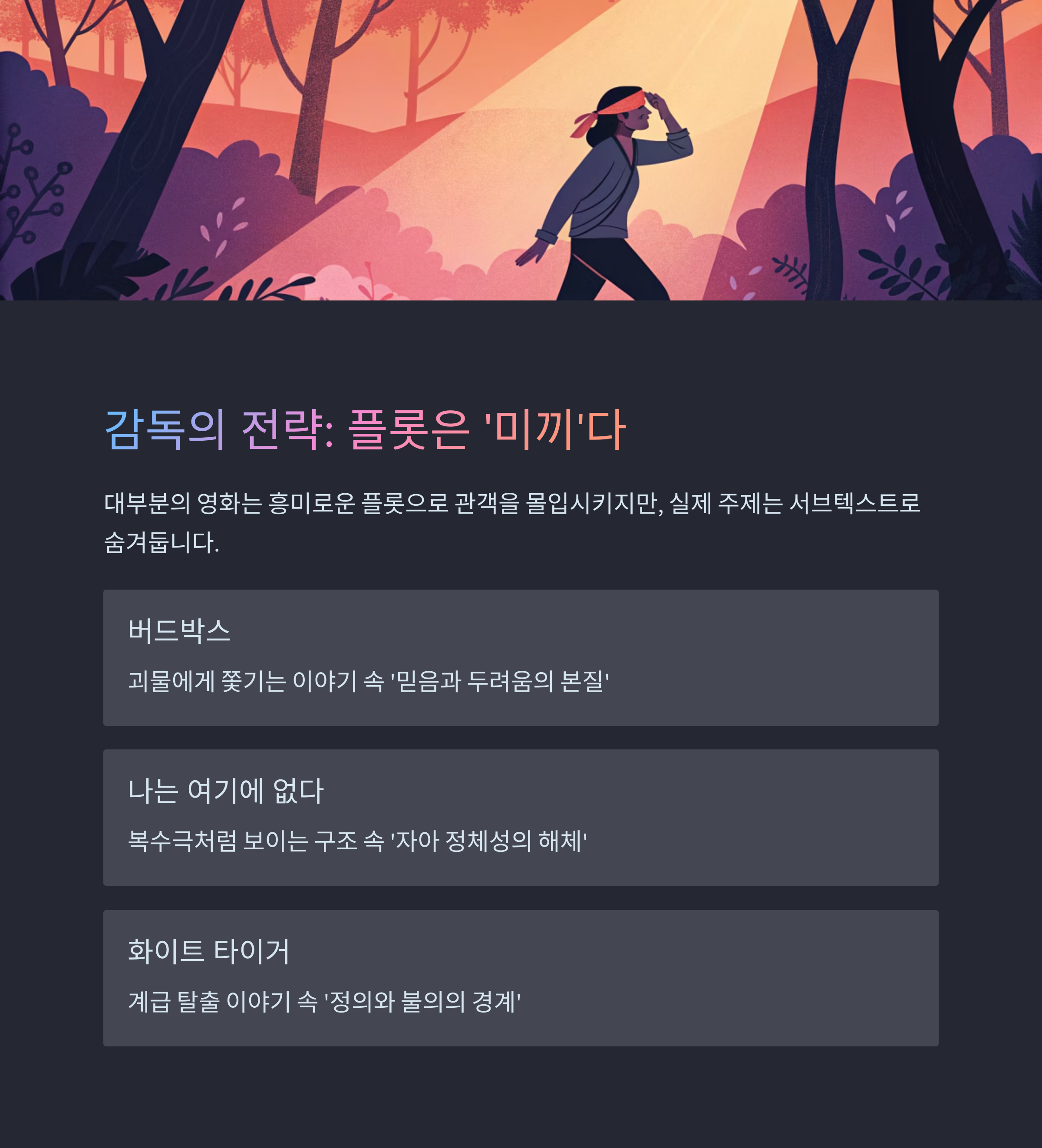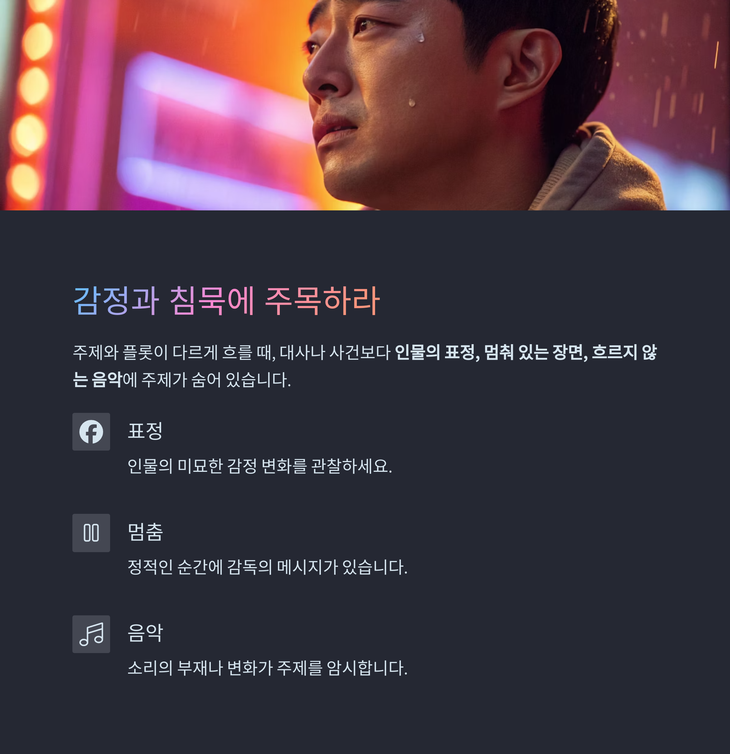 플롯과 주제가 다르게 흘러갈 땐, 반드시 ‘감정’과 ‘침묵’을 본다