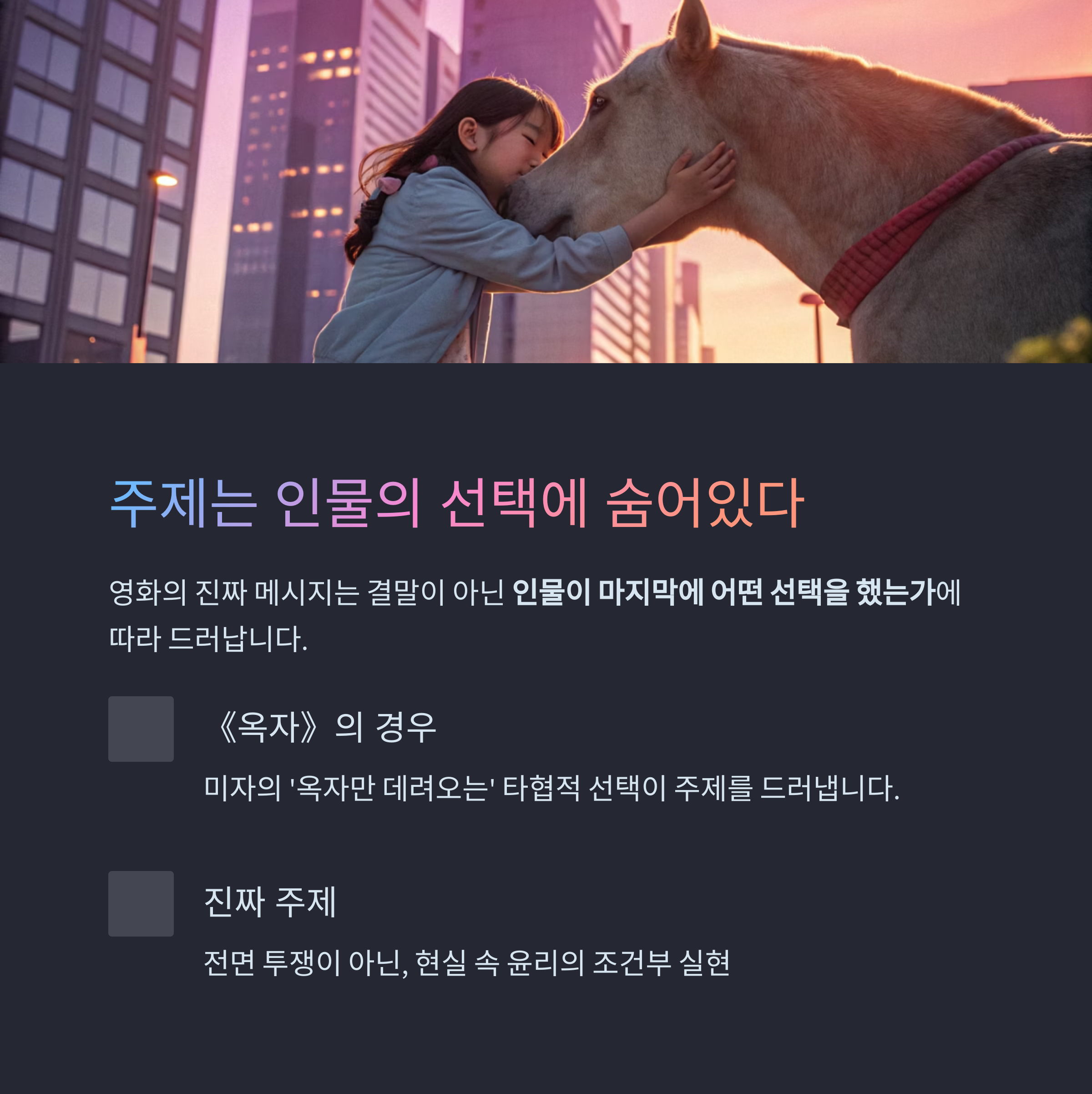 결말의 메시지는 전혀 다른 이야기처럼 느껴질 때가 있습니다
