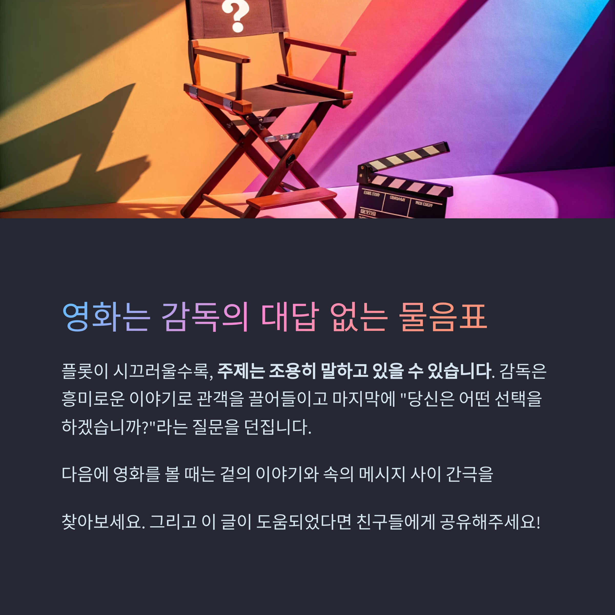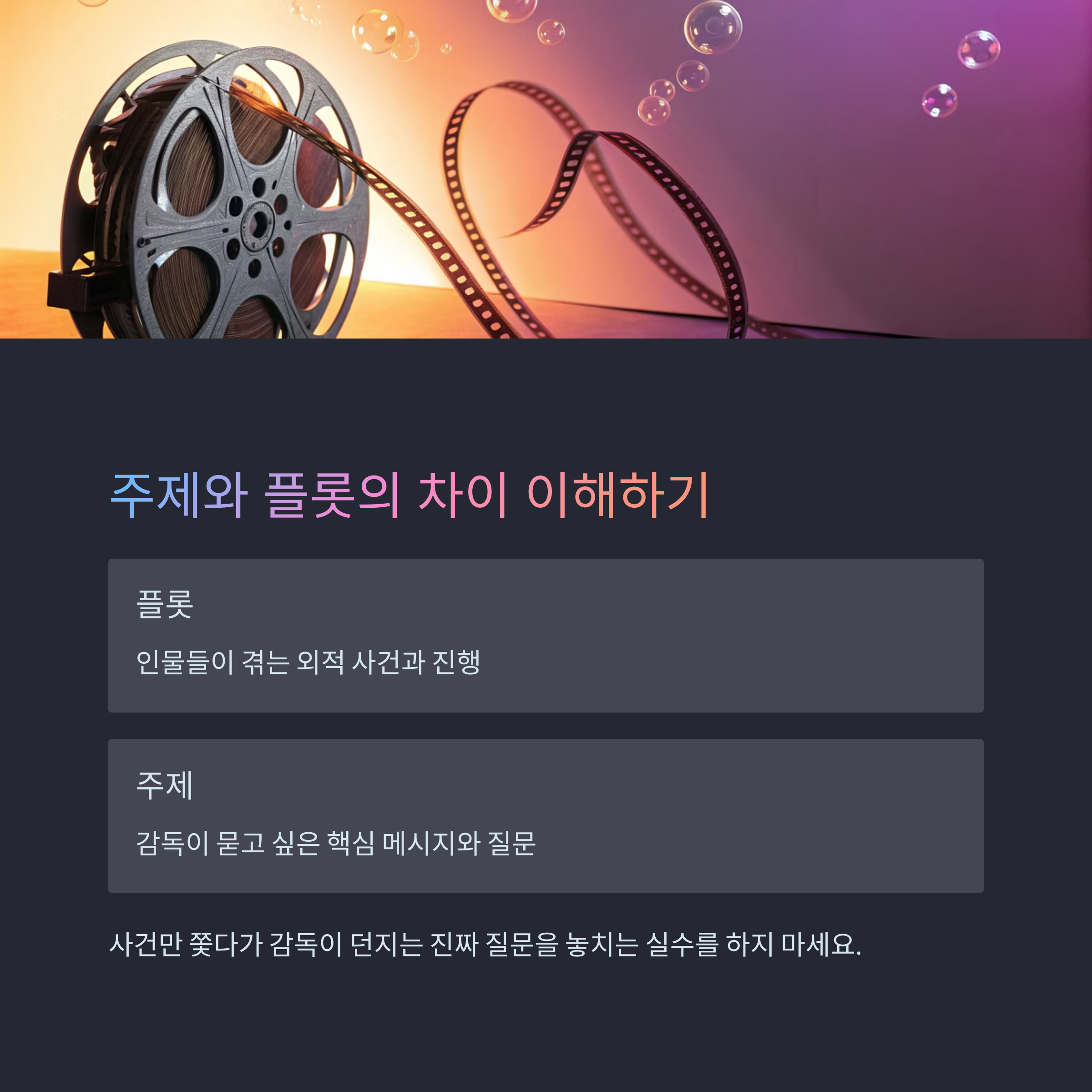 플롯은 관객을 이끄는 길이고, 주제는 감독이 남긴 대답 없는 물음표다