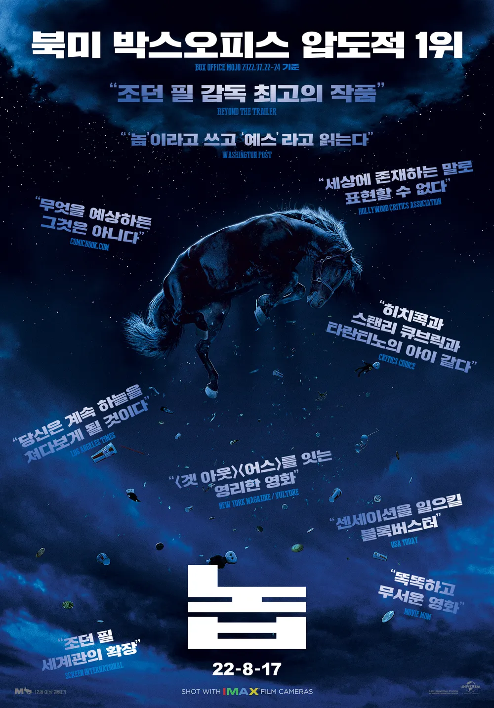 2022년 개봉한 영화 놉(NOPE)은 겟 아웃과 어스를 연출한 조던 필 감독의