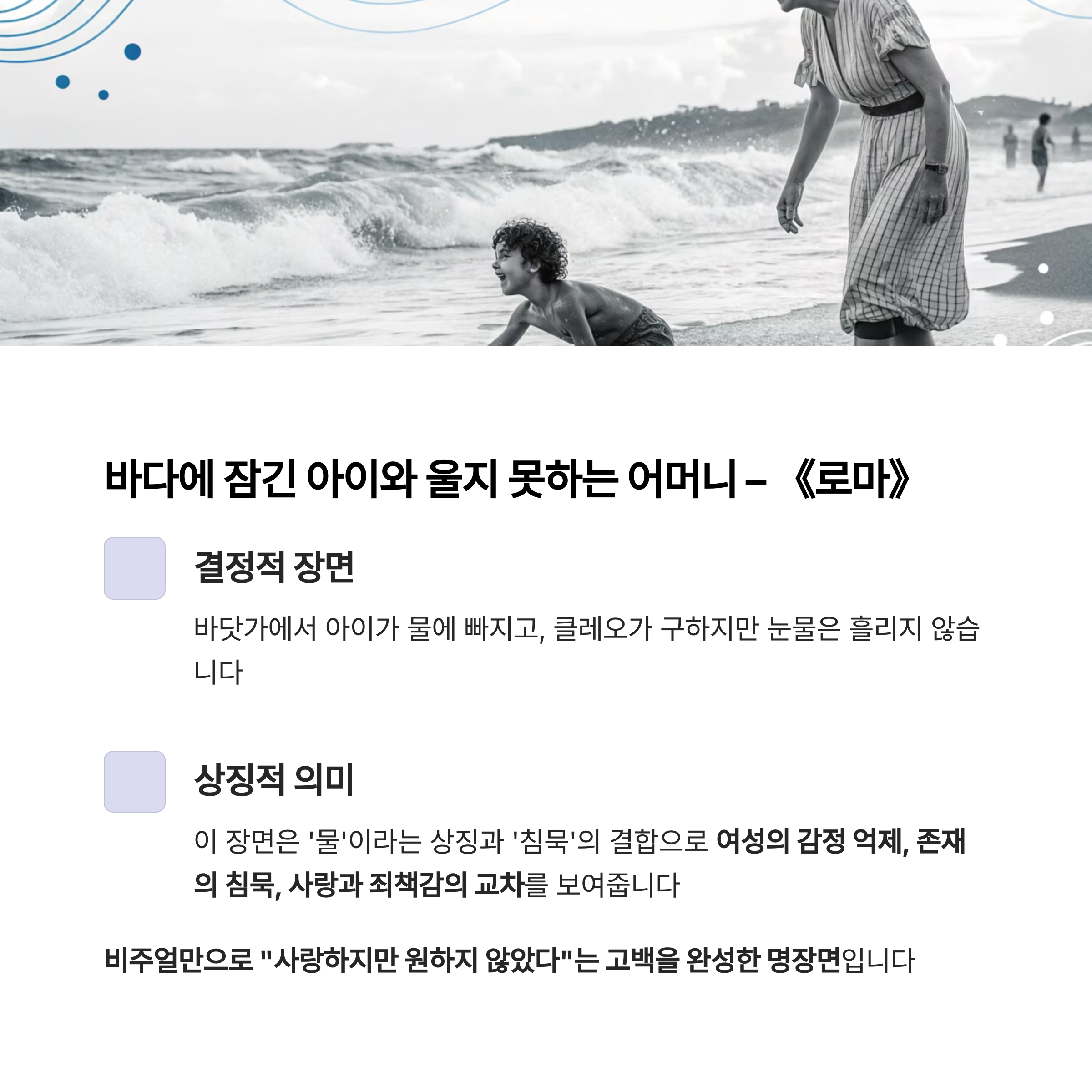이 장면은 ‘물’이라는 상징과 ‘침묵’의 결합으로