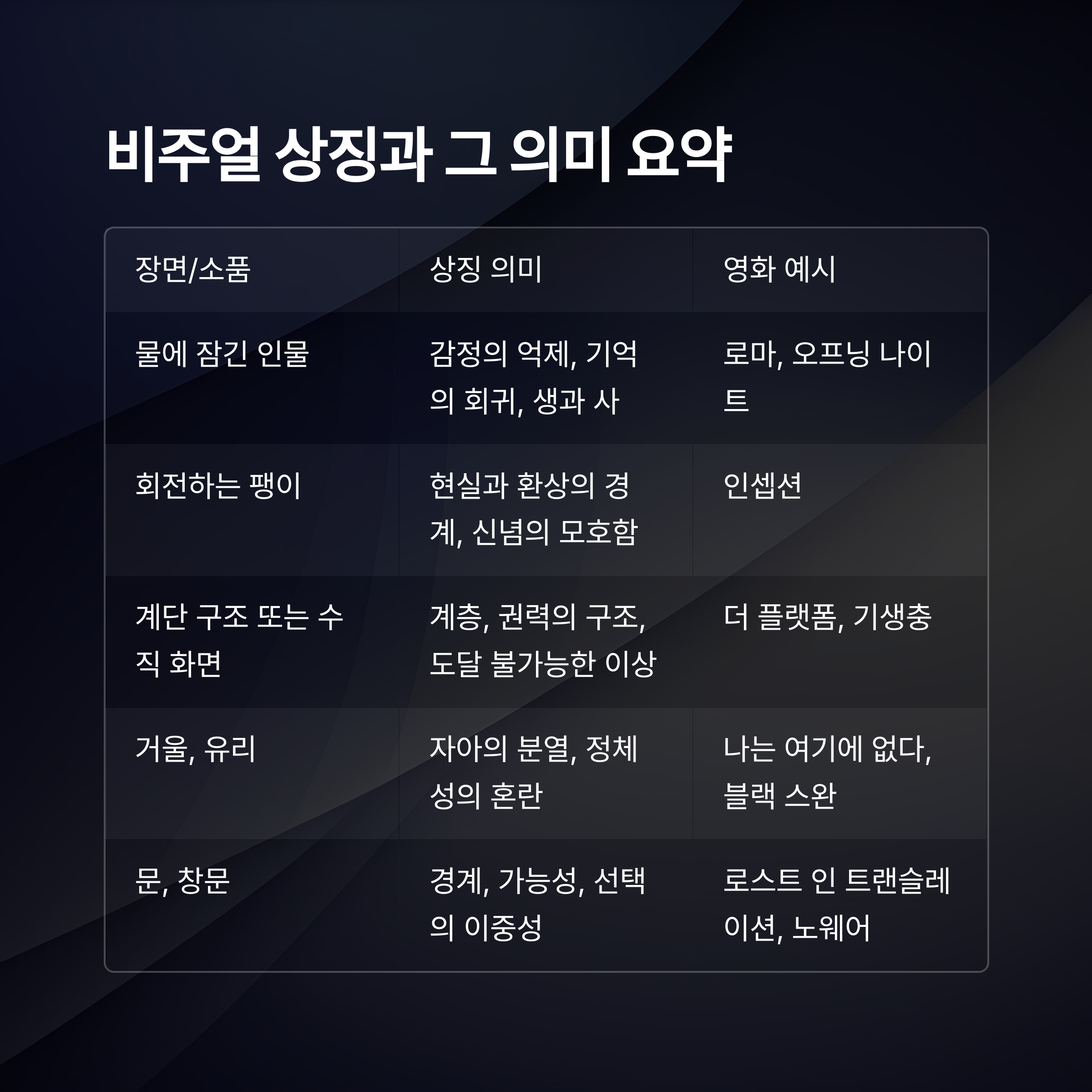 이 글에서는 넷플릭스 및 주요 영화 속 비주얼 상징 장면들을 분석하고