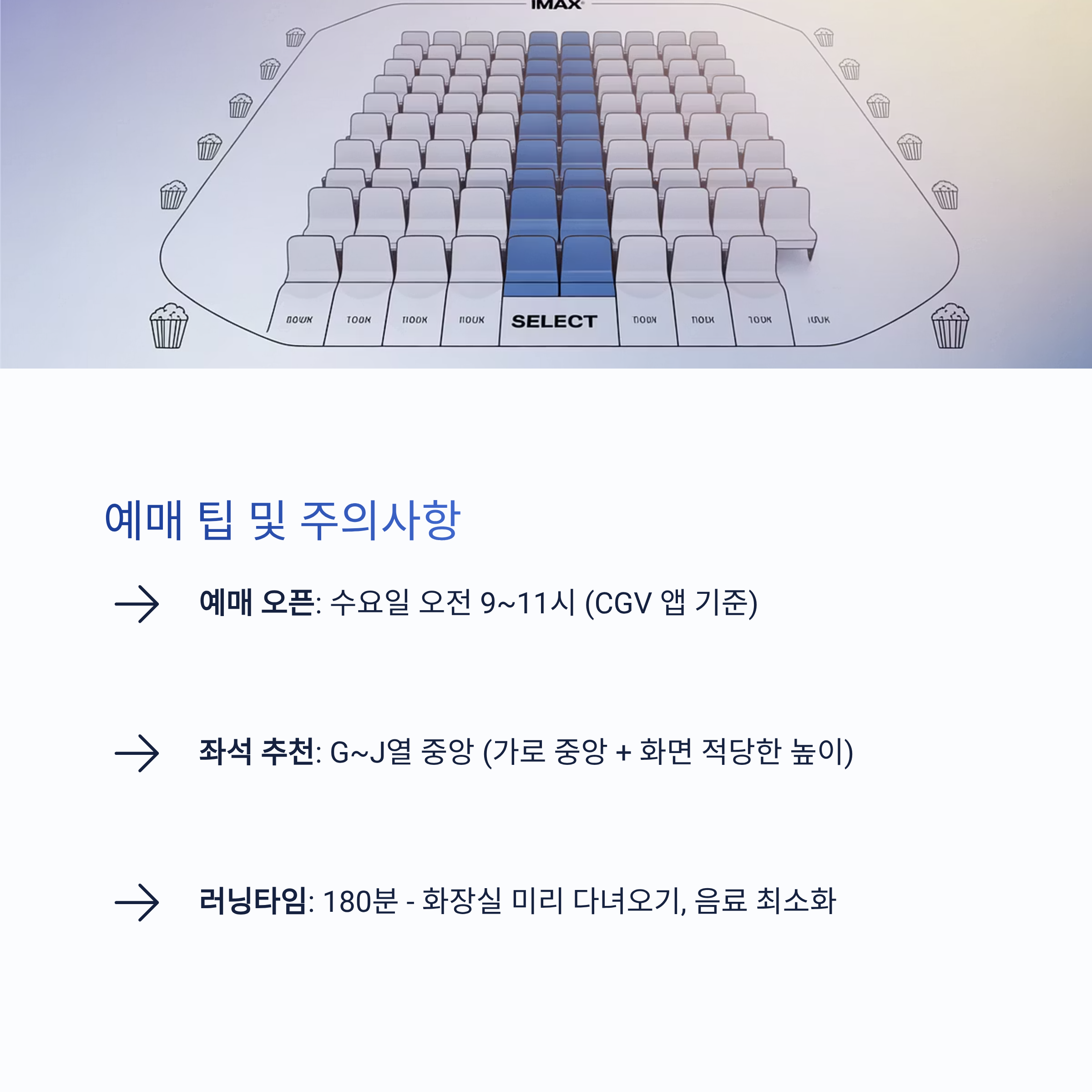 - 180분 러닝타임 → 좌석/타이밍 신경쓰기