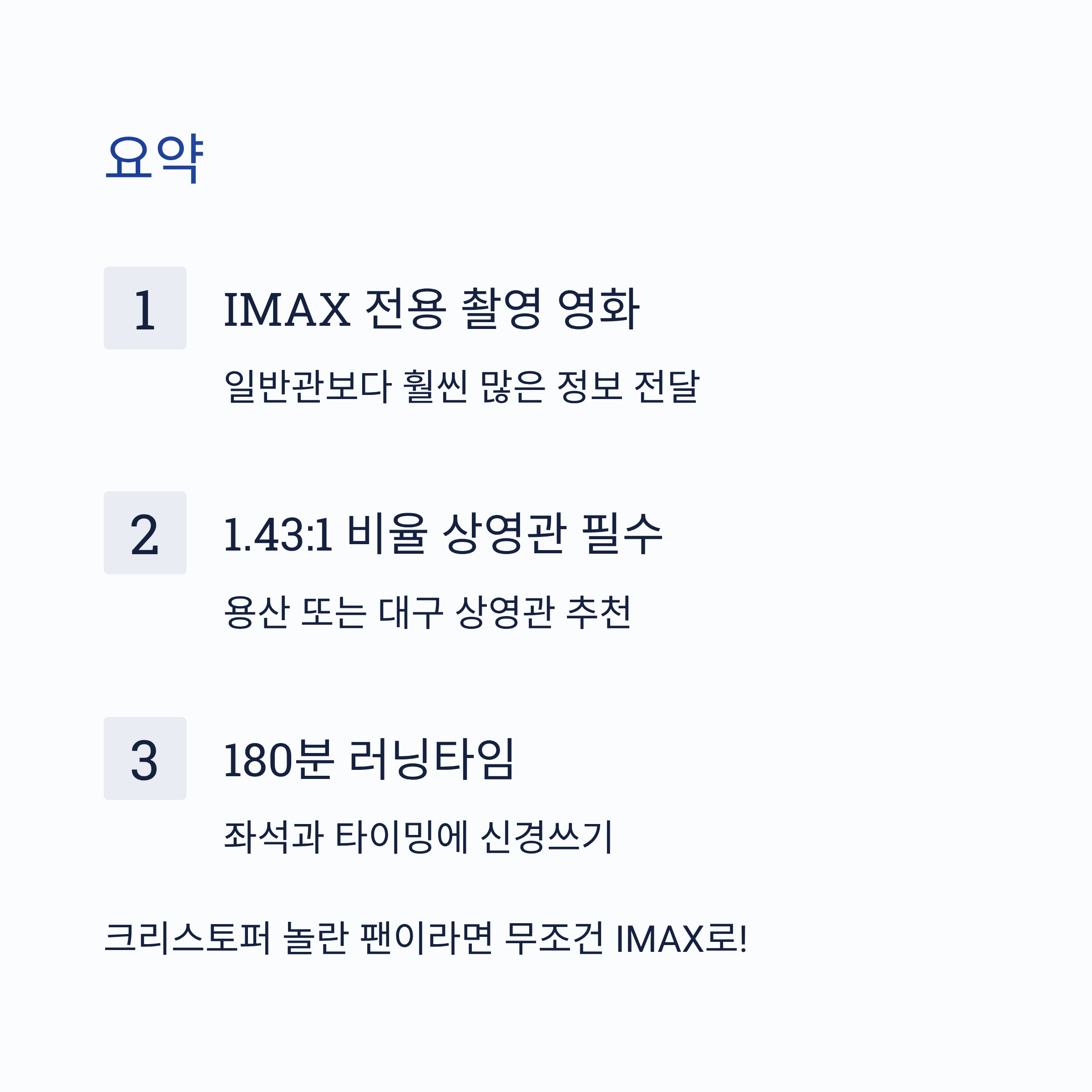 - 크리스토퍼 놀란 팬이라면 무조건 IMAX로!