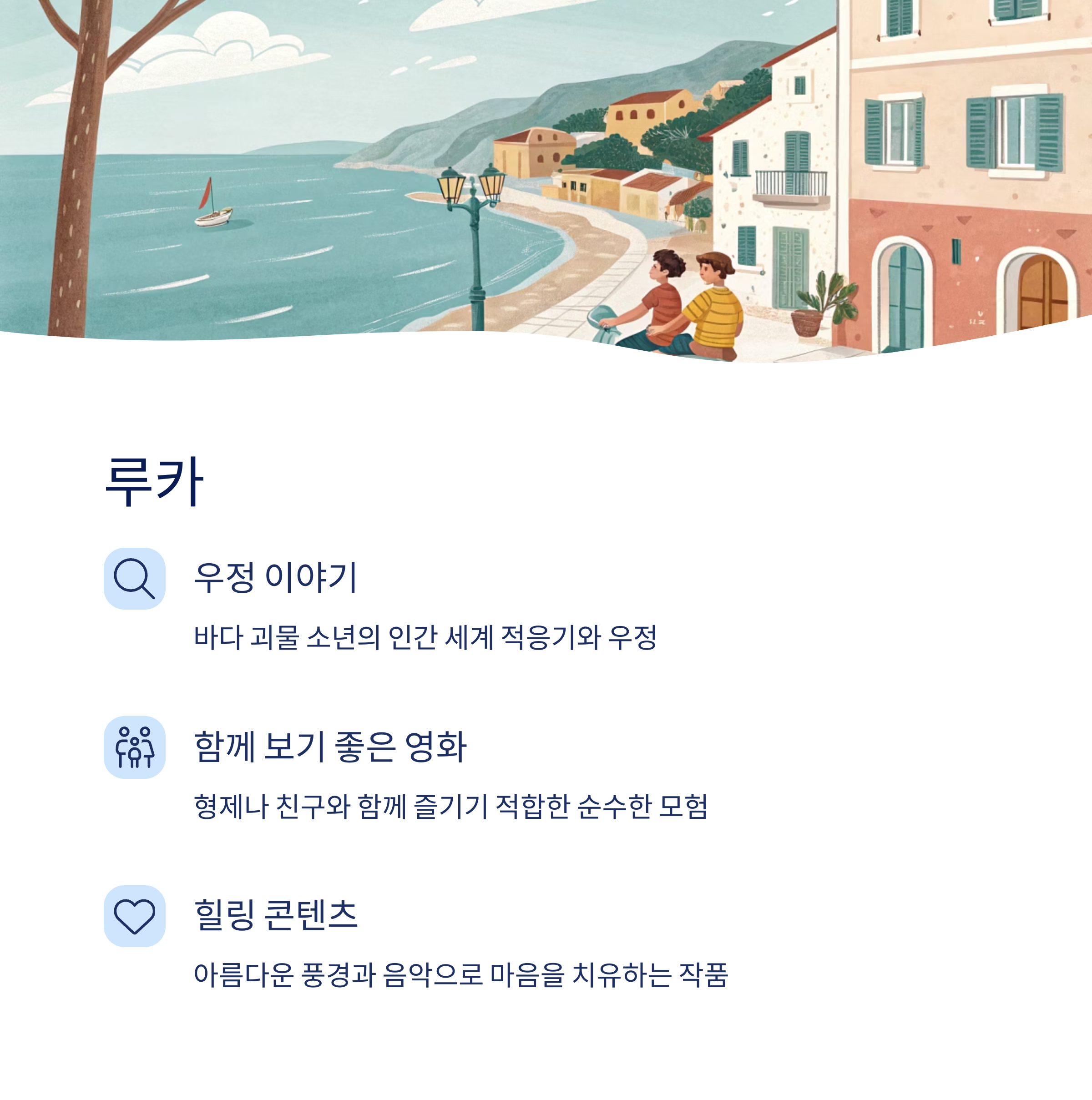 | 루카 | 애니메이션/우정 | 유년층 | 친구·형제 이야기 |