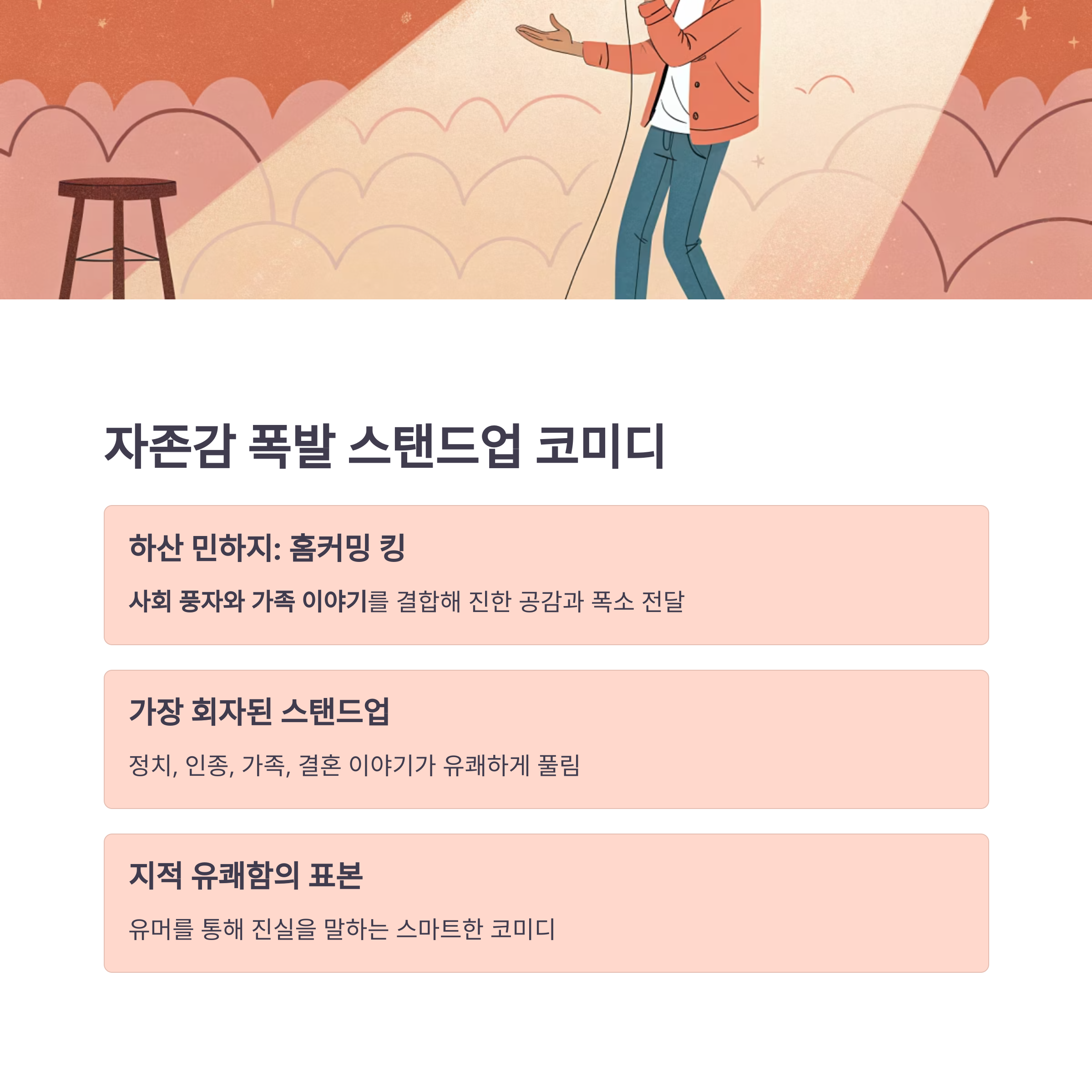 인도계 미국인 하산 민하지는 사회 풍자와 가족 이야기를 결합해 진한 공감과 폭소를 동시에 전달합니다.